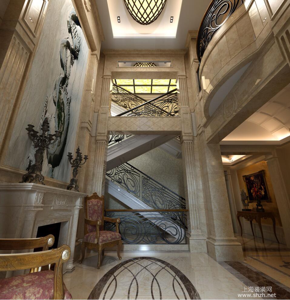 楼梯 - 别墅装修欧式古典风格设计,上海腾龙别墅设计