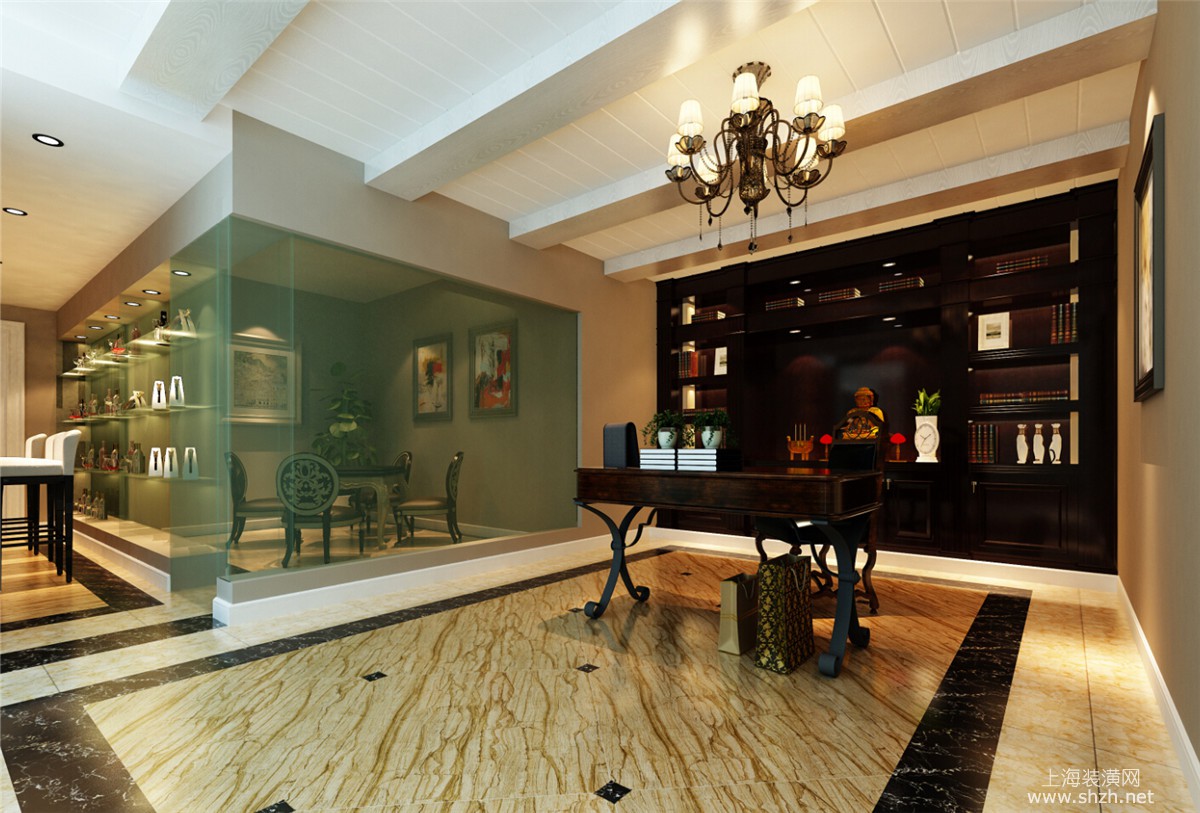 (浦江华侨城)地下室,书房.jpg - 浦江华侨城别墅装修新古典风格设计,上海腾龙别墅设计,