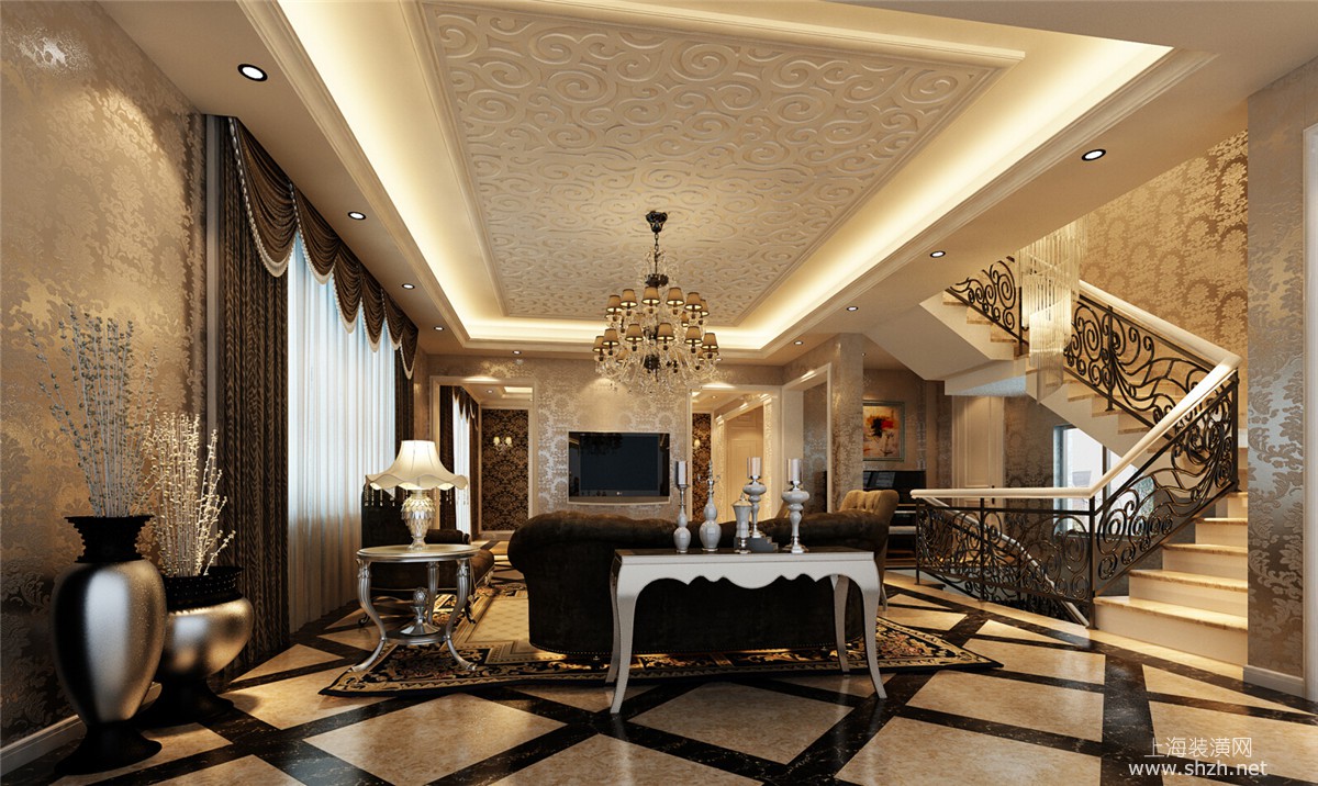 (浦江华侨城)客厅.jpg - 浦江华侨城别墅装修新古典风格设计,上海腾龙别墅设计,