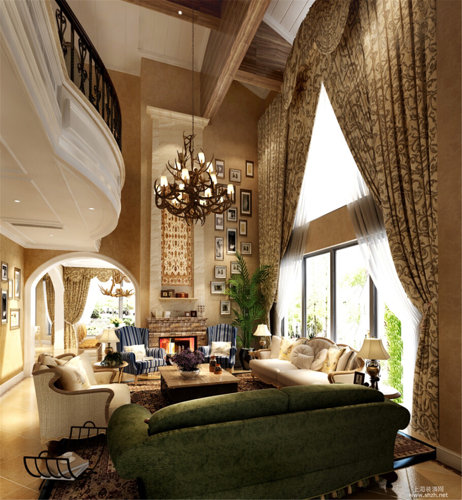 客厅 - 绿洲千岛花园别墅装修美式风格设计,上海腾龙别墅设计