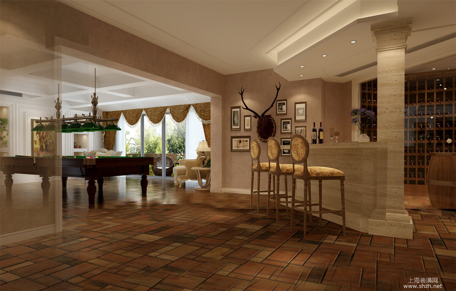吧台 - 绿洲千岛花园别墅装修美式风格设计,上海腾龙别墅设计