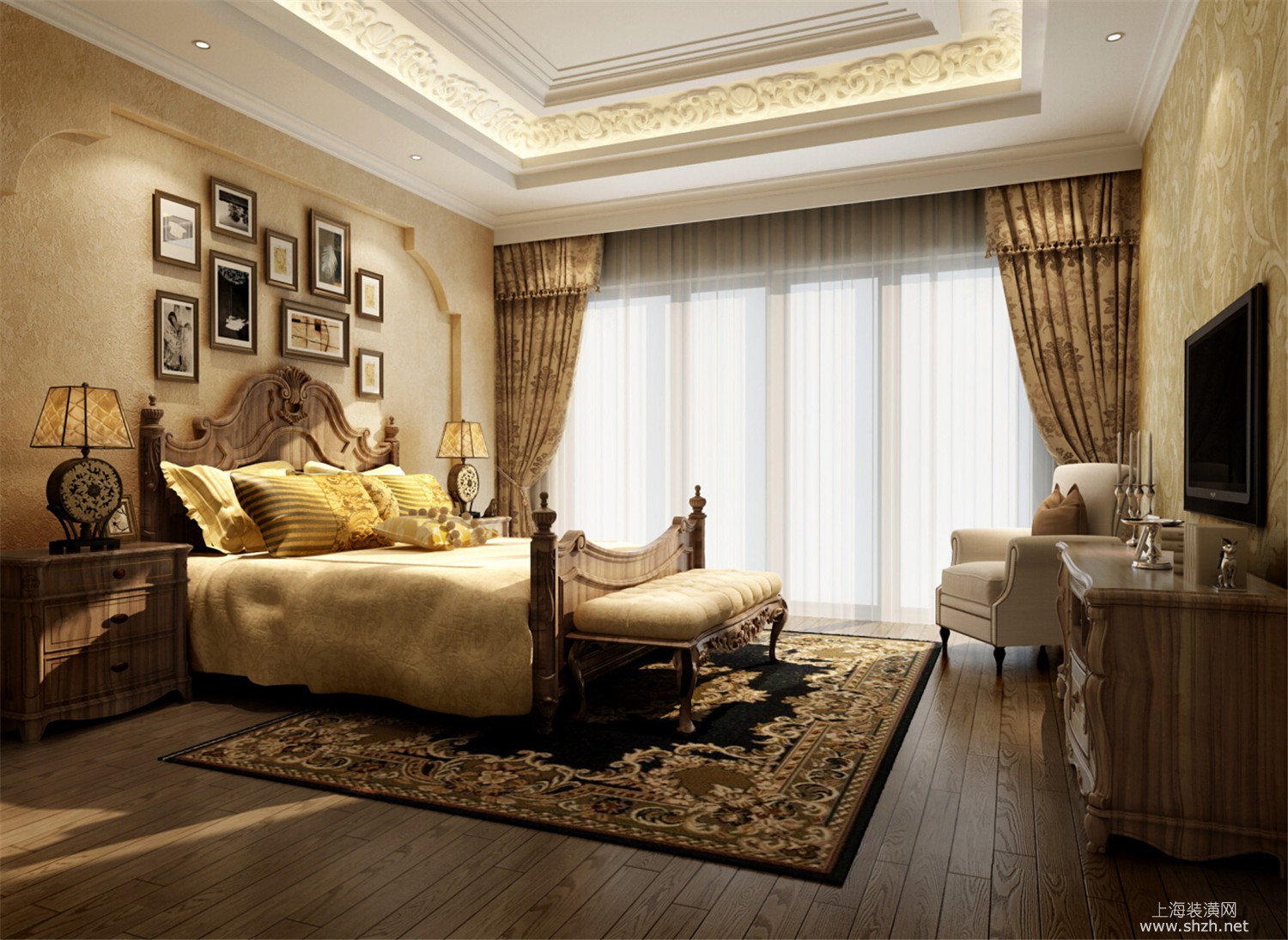 卧室 - 绿洲千岛花园别墅装修美式风格设计,上海腾龙别墅设计