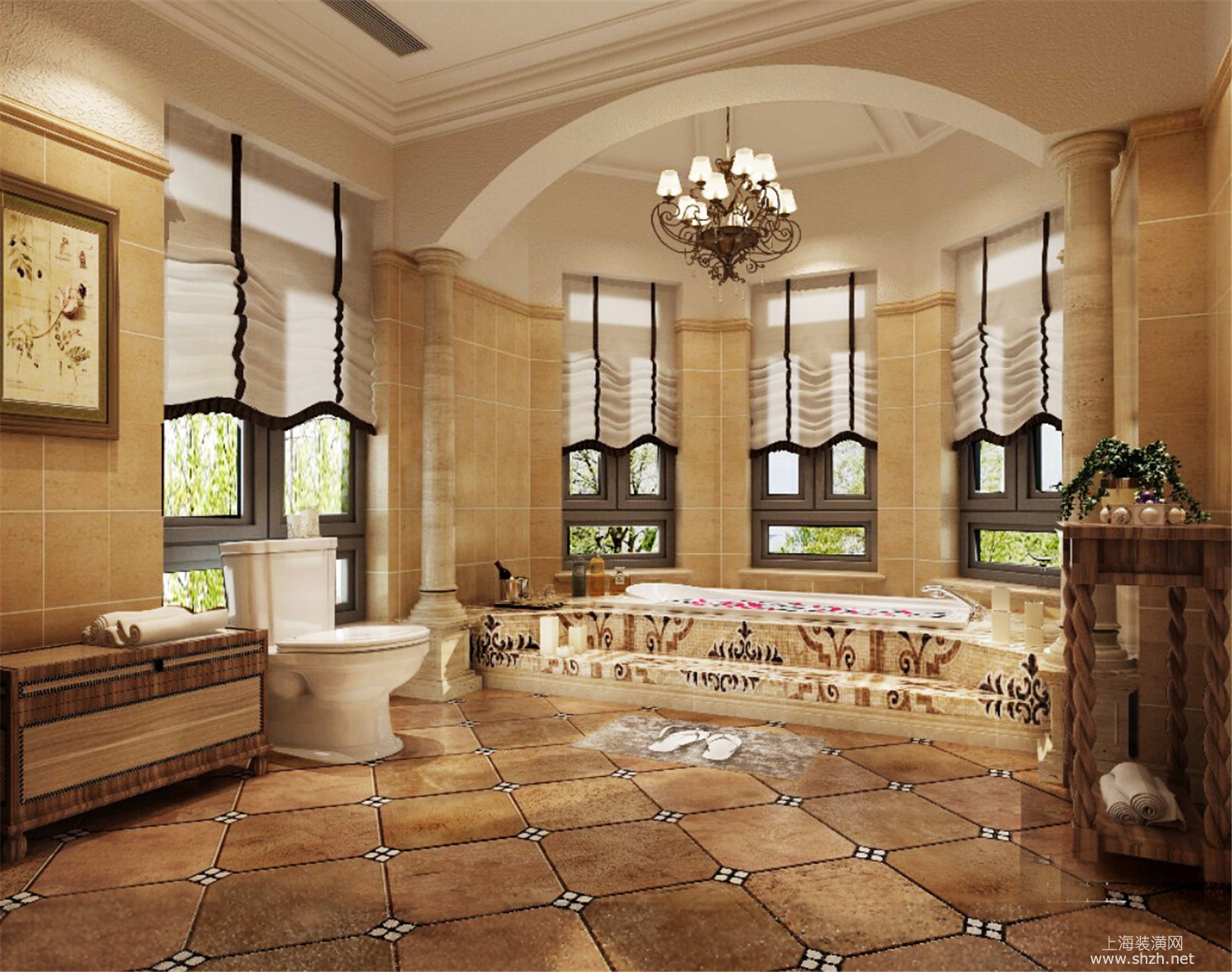 卫生间 - 绿洲千岛花园别墅装修美式风格设计,上海腾龙别墅设计