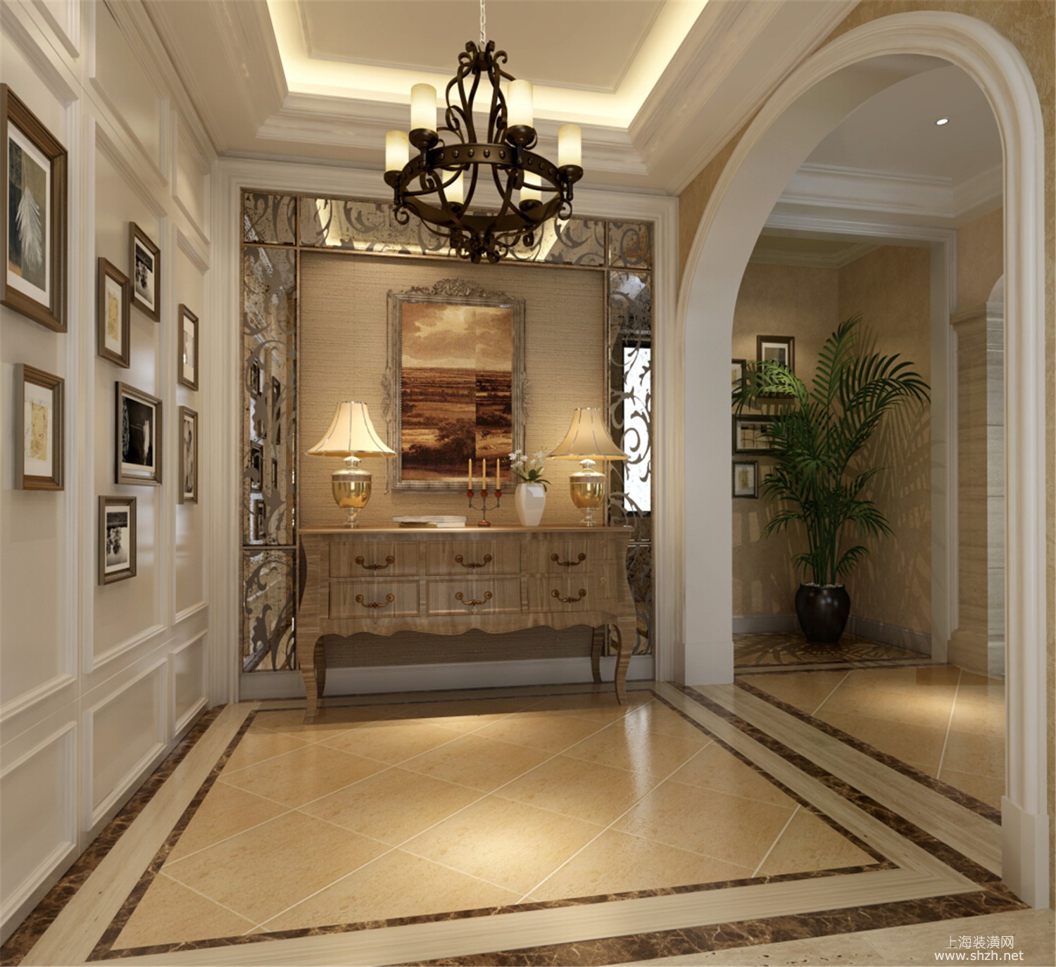 走廊 - 绿洲千岛花园别墅装修美式风格设计,上海腾龙别墅设计
