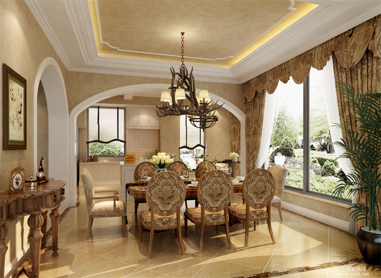 餐厅 - 绿洲千岛花园别墅装修美式风格设计,上海腾龙别墅设计