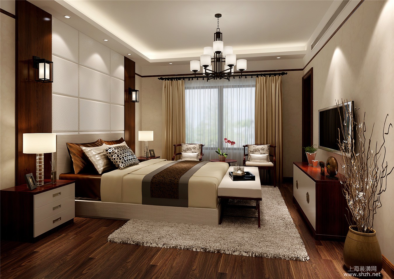 绿地曼哈顿主卧.jpg - 绿地曼哈顿别墅装修现代中式风格设计,上海腾龙别墅设计!