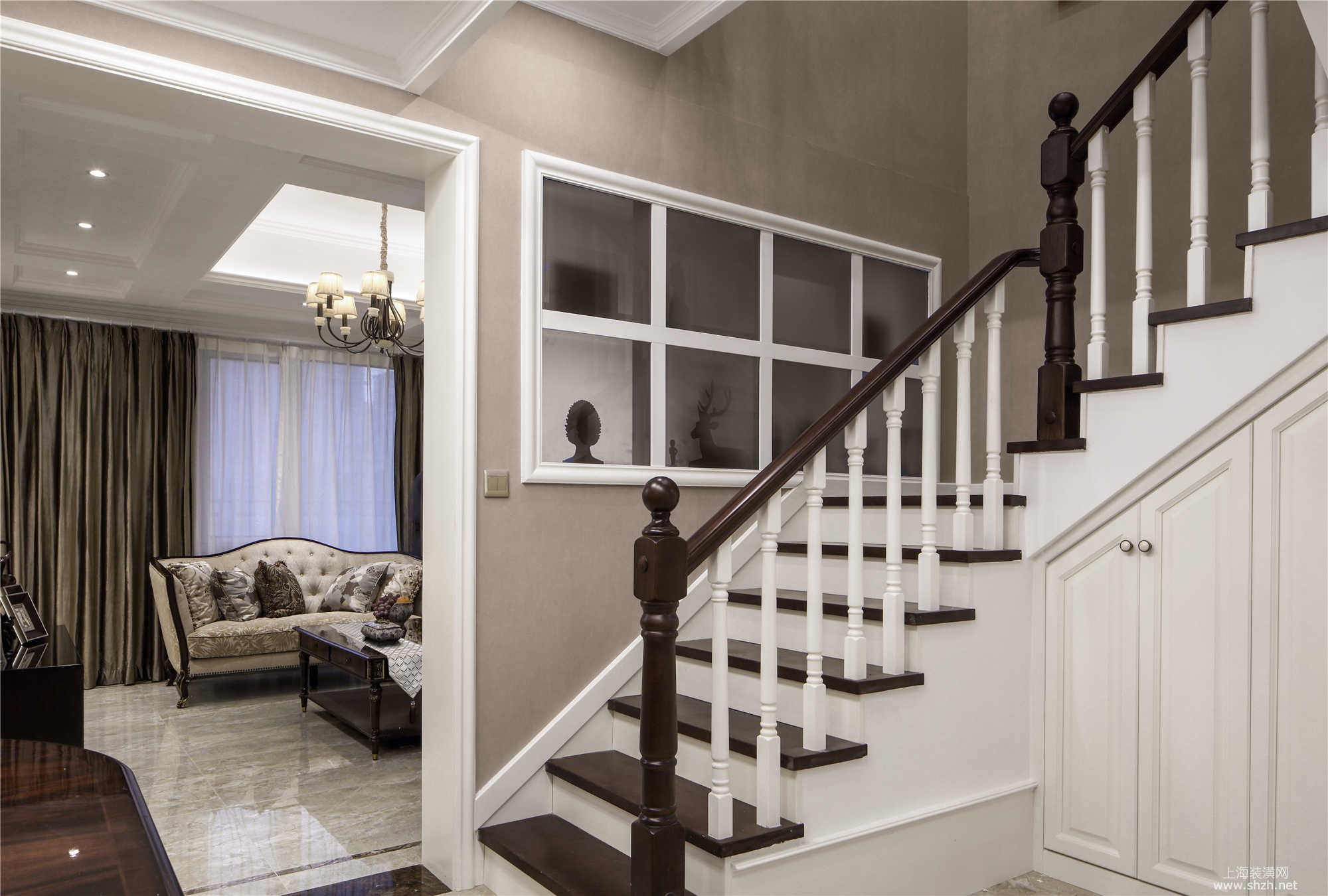 楼梯 - 奉贤棕榈滩别墅装修欧美风格设计,上海腾龙别墅设计咨询预约电话:15800615719
