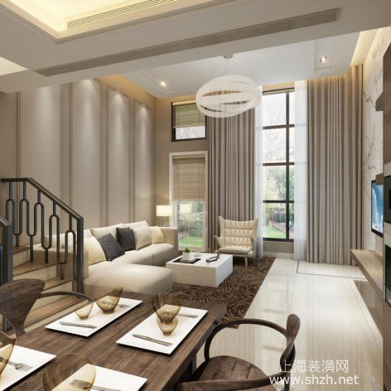 2.jpg - 御沁园房型优点就是有挑高的客厅,我们以白色整块大理石作为客厅背景简洁大气。餐厅吧台与餐桌相连的设计是现代风格室内设计中的一种手法,可以让整个空间更显示宽敞与连贯。大理石,铁艺与木质的结合充分体现的整套设计作品的现代气质。