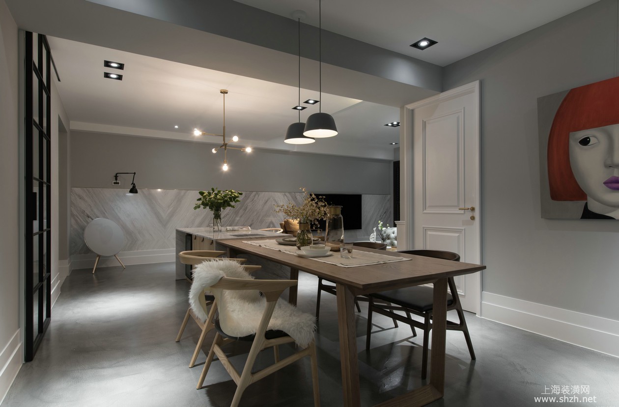 餐厅 - 淮海晶华苑 大平层装修现代风格设计,上海腾龙别墅设计作品