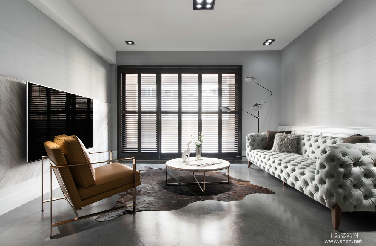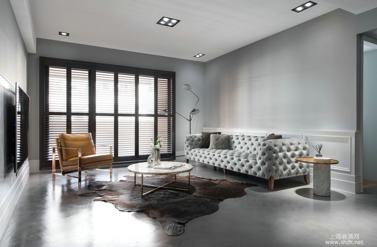 客厅 - 淮海晶华苑 大平层装修现代风格设计,上海腾龙别墅设计作品