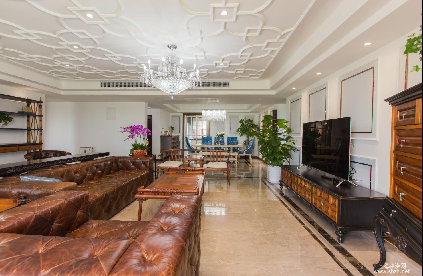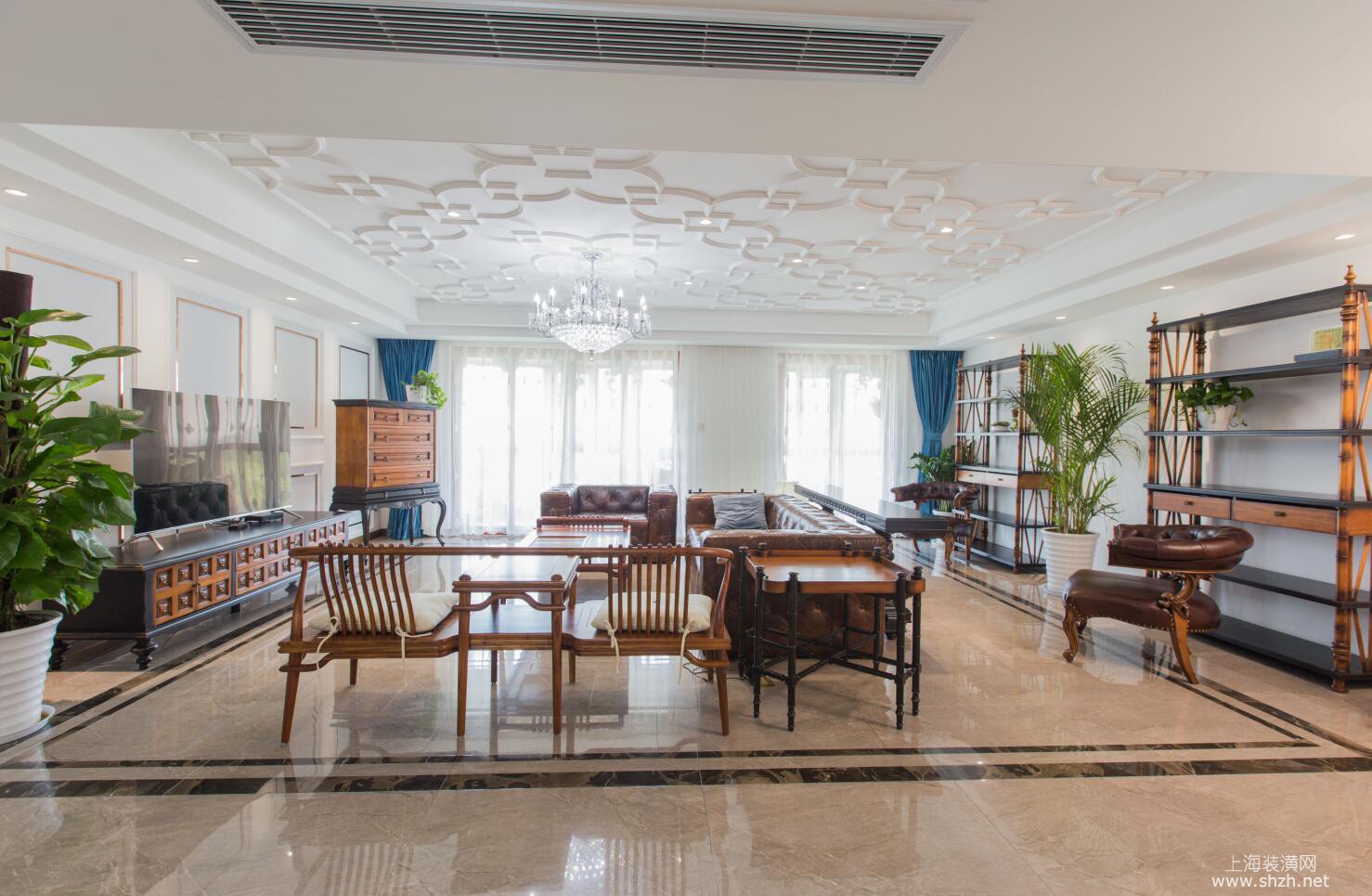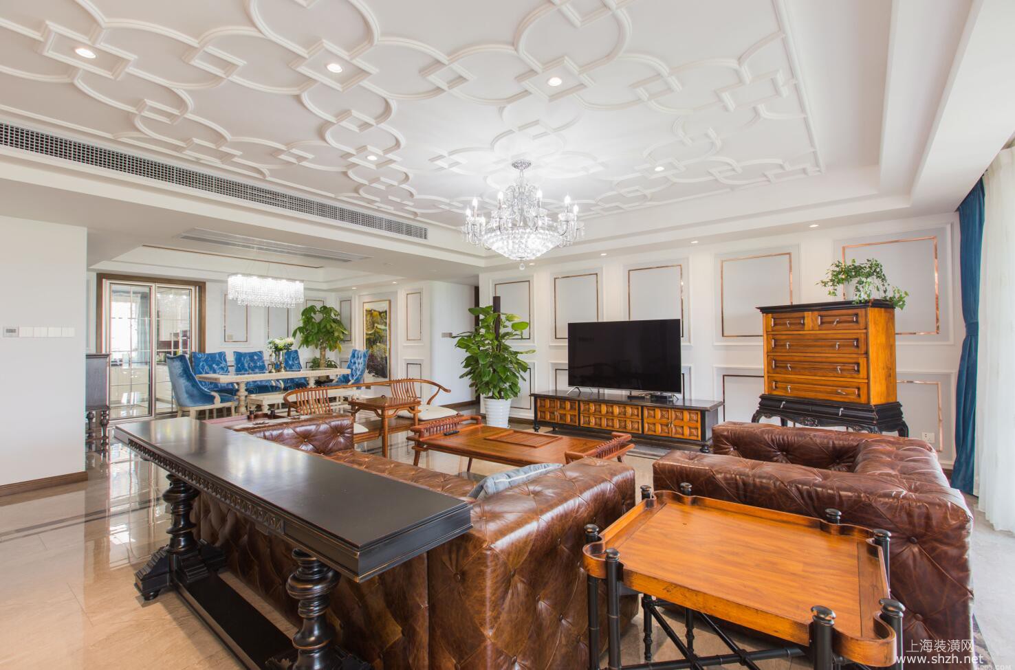 客厅 - 上海豪宅装修美式简约风格完工实景展示,上海腾龙别墅设计作品!