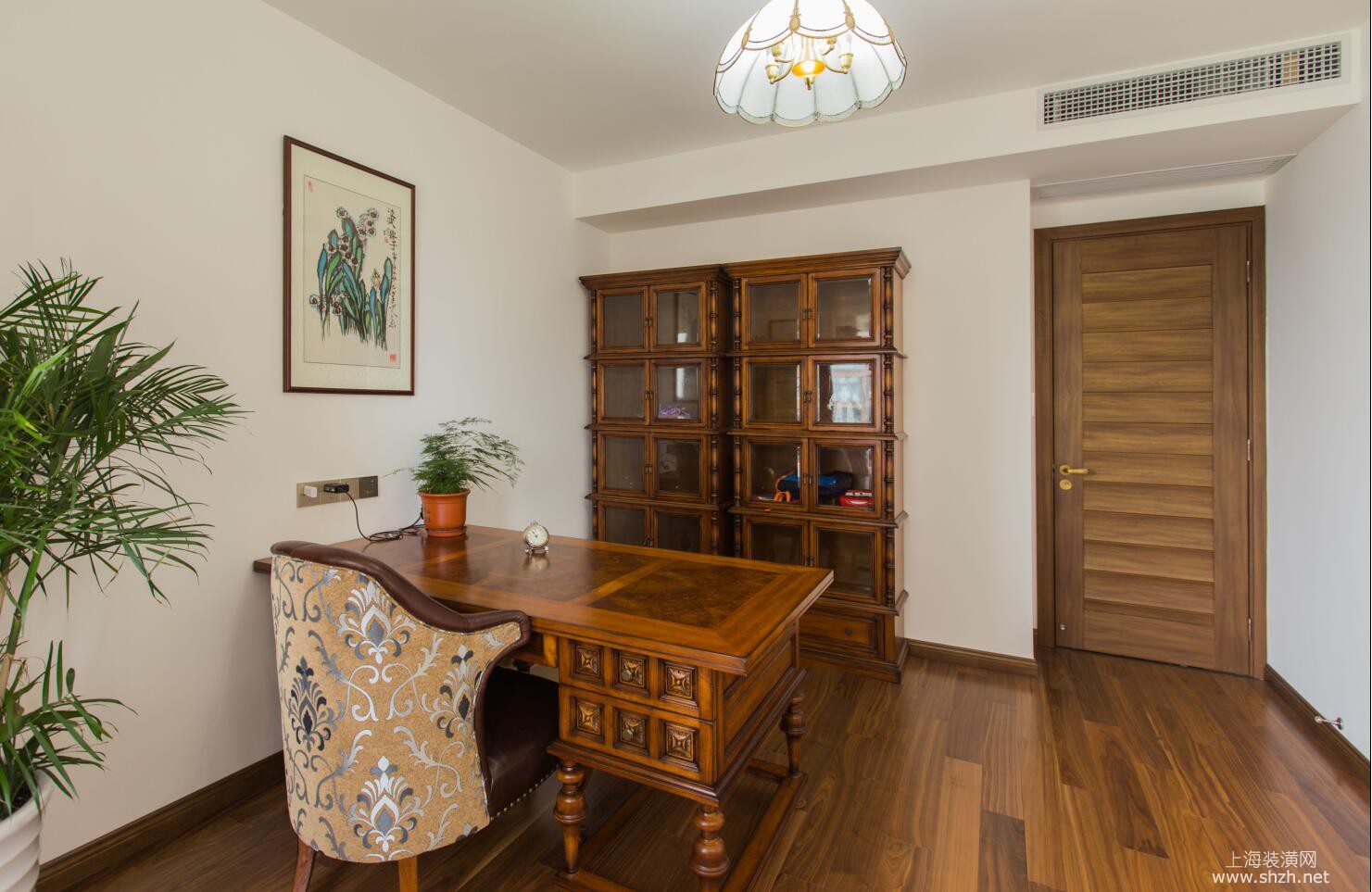 书房 - 上海豪宅装修美式简约风格完工实景展示,上海腾龙别墅设计作品!