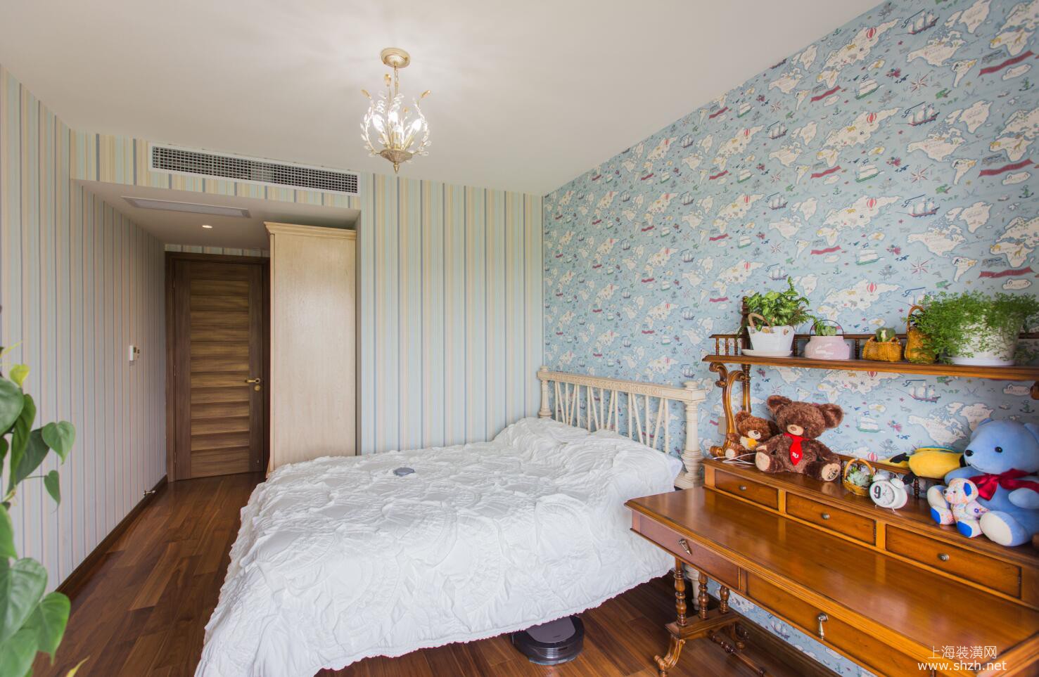 卧室 - 上海豪宅装修美式简约风格完工实景展示,上海腾龙别墅设计作品!