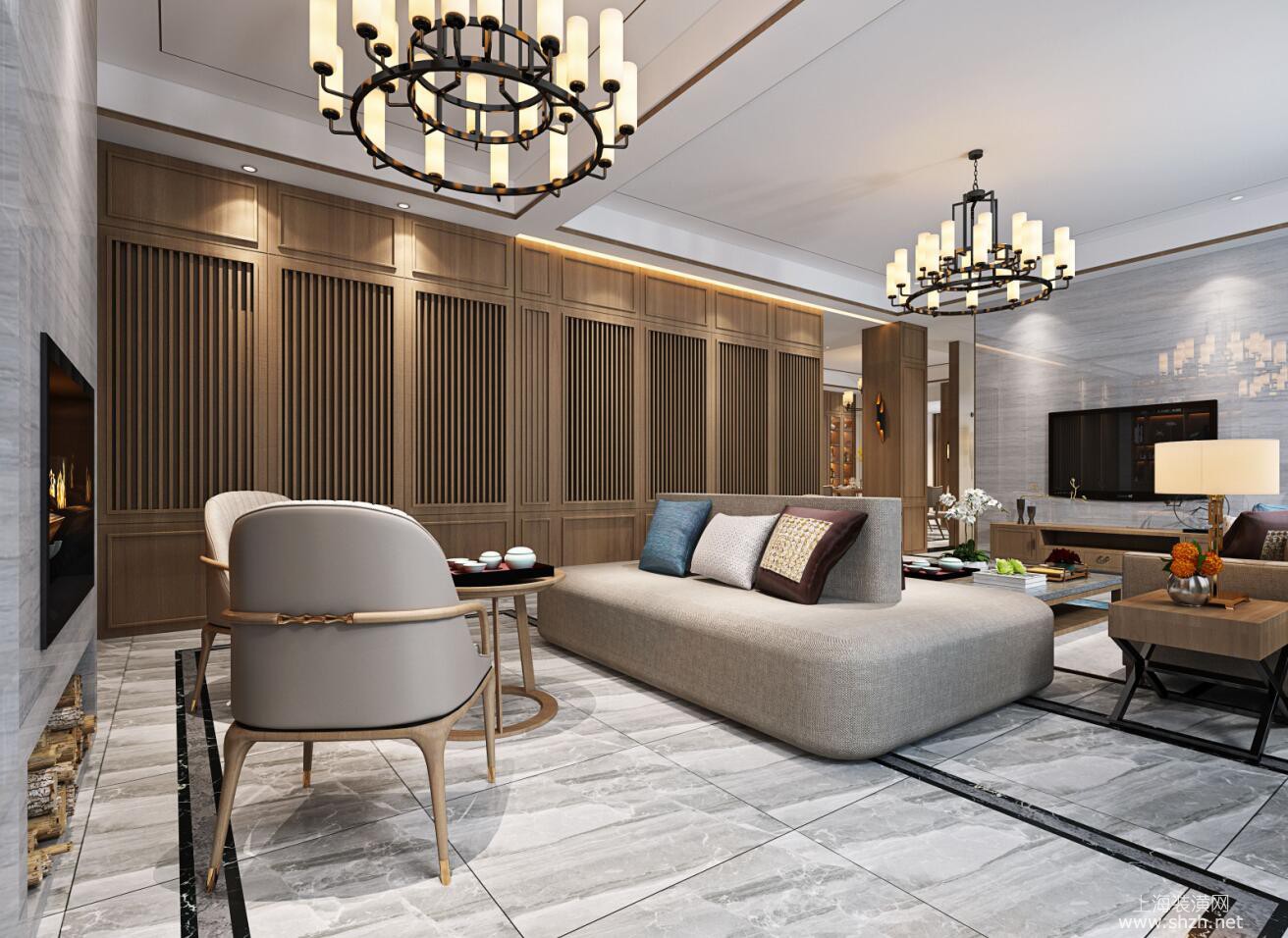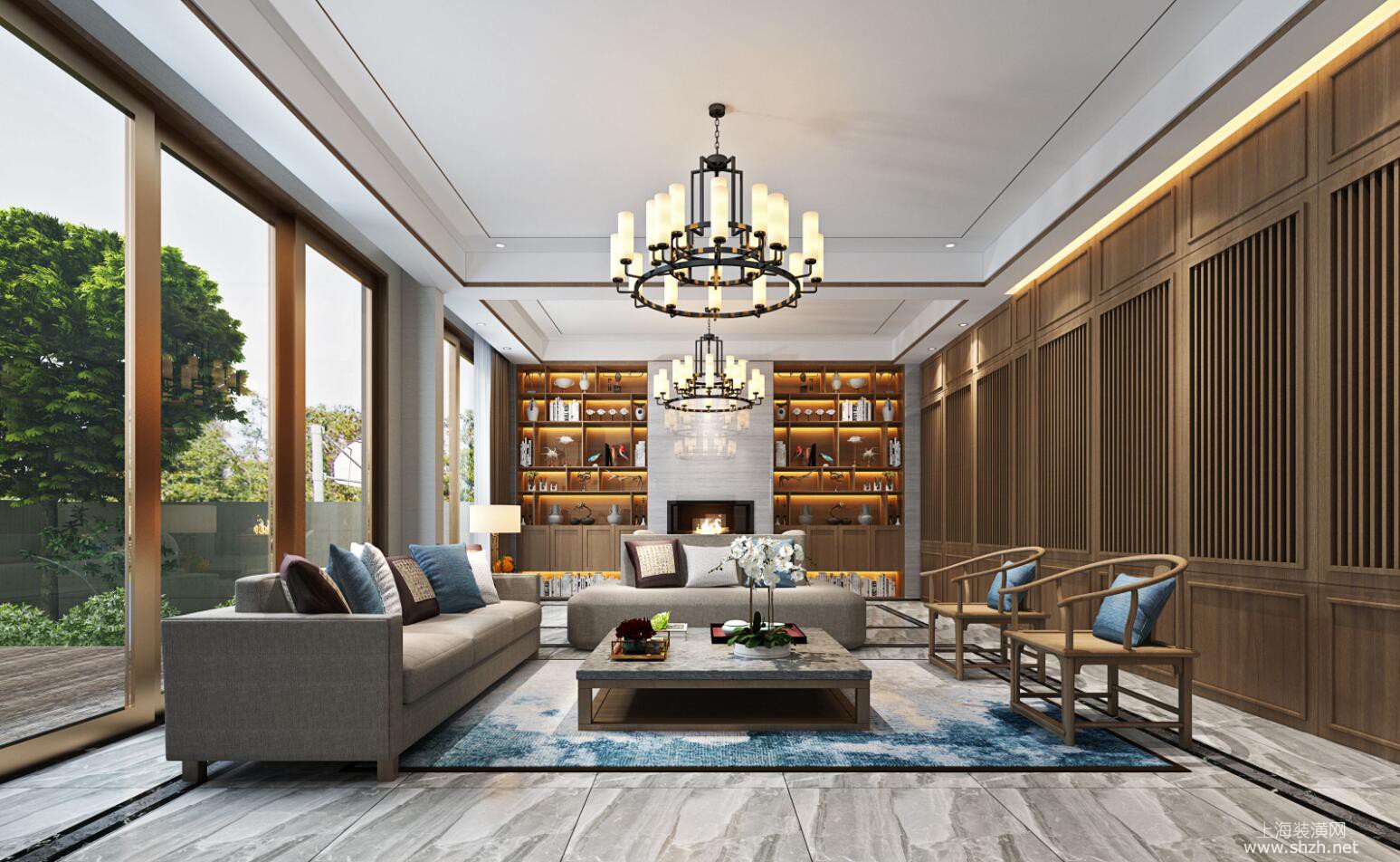 客厅 - 海天花园别墅装修新中式设计,上海腾龙别墅设计作品,欢迎品鉴