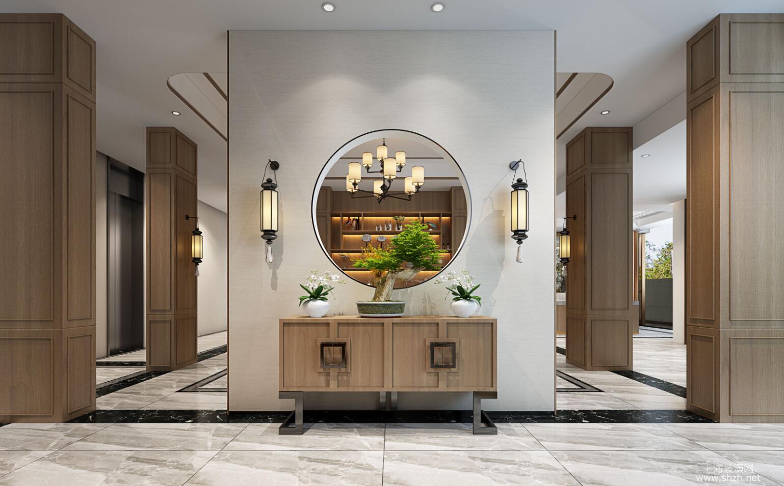 玄关 - 海天花园别墅装修新中式设计,上海腾龙别墅设计作品,欢迎品鉴