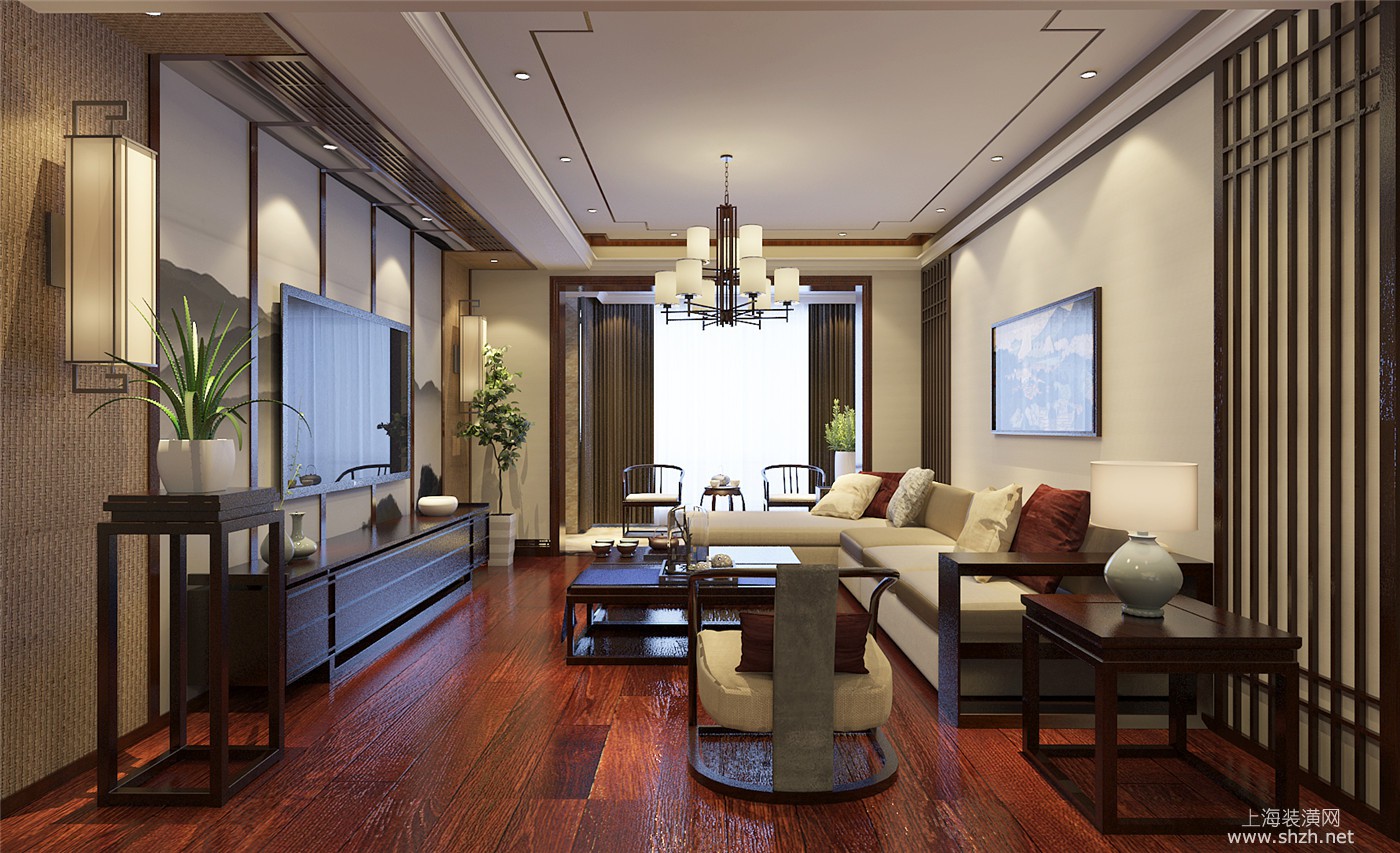 客厅 - 绿洲康城金帝豪苑别墅装修新中式风格设计,上海腾龙别墅设计作品,欢迎品鉴