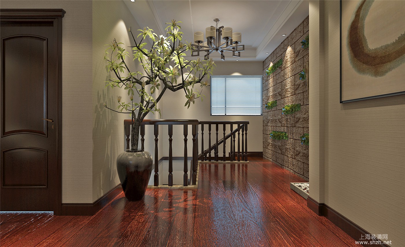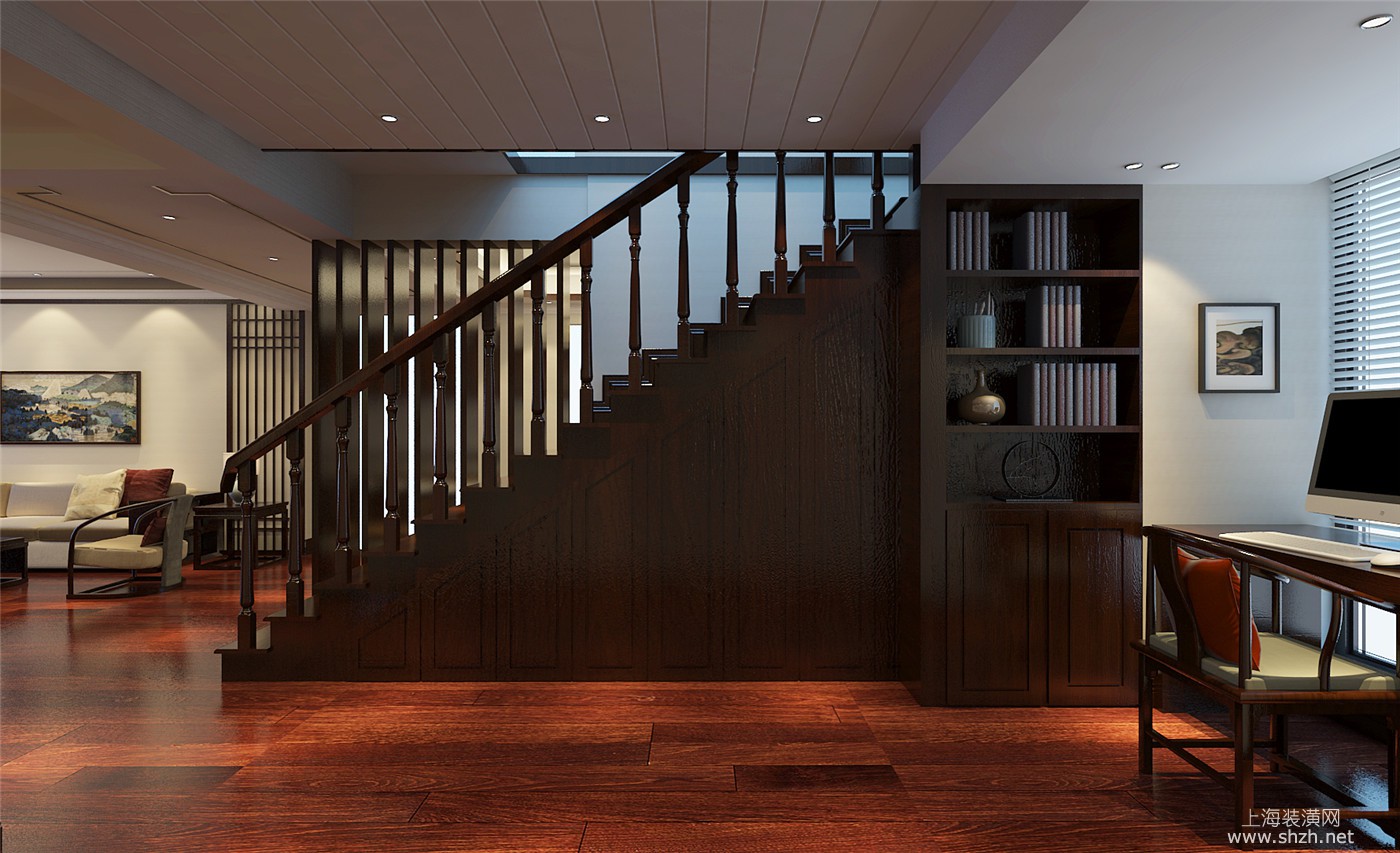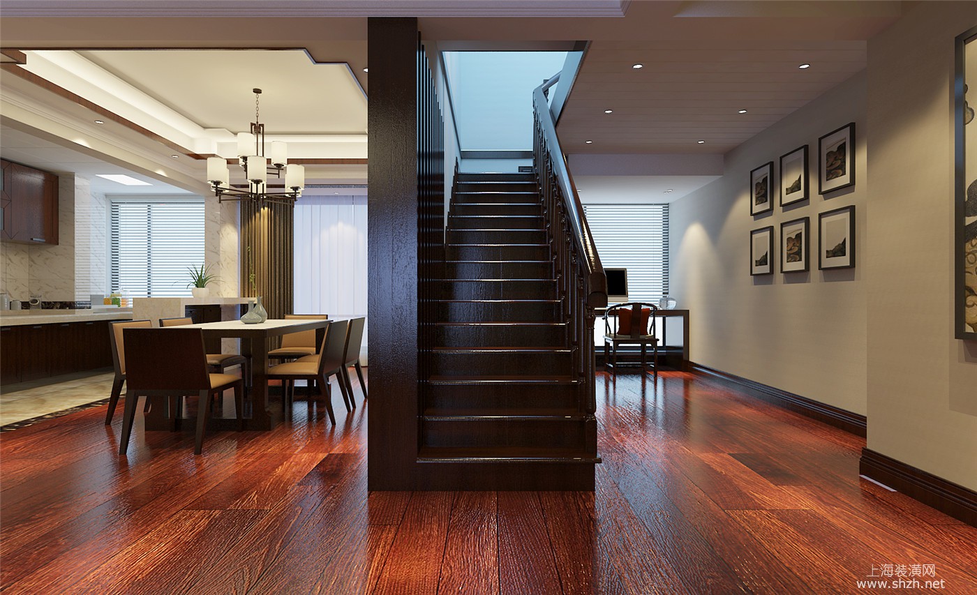 楼梯 - 绿洲康城金帝豪苑别墅装修新中式风格设计,上海腾龙别墅设计作品,欢迎品鉴