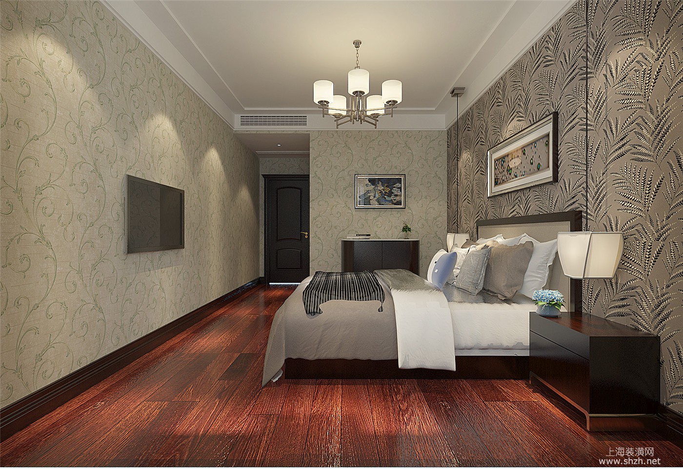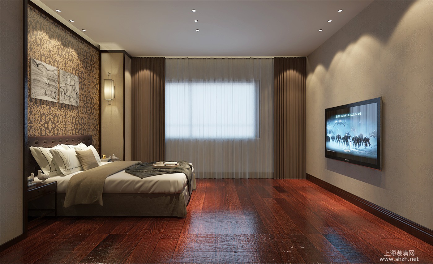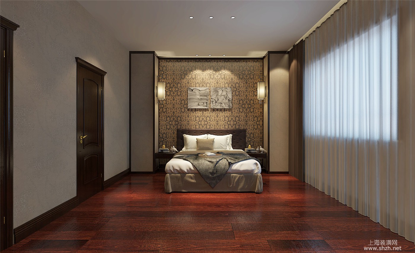 卧室 - 绿洲康城金帝豪苑别墅装修新中式风格设计,上海腾龙别墅设计作品,欢迎品鉴