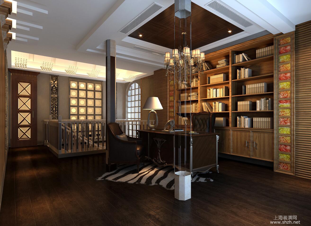 书房 - 别墅装修中式风格设计,上海腾龙别墅设计作品,欢迎品鉴