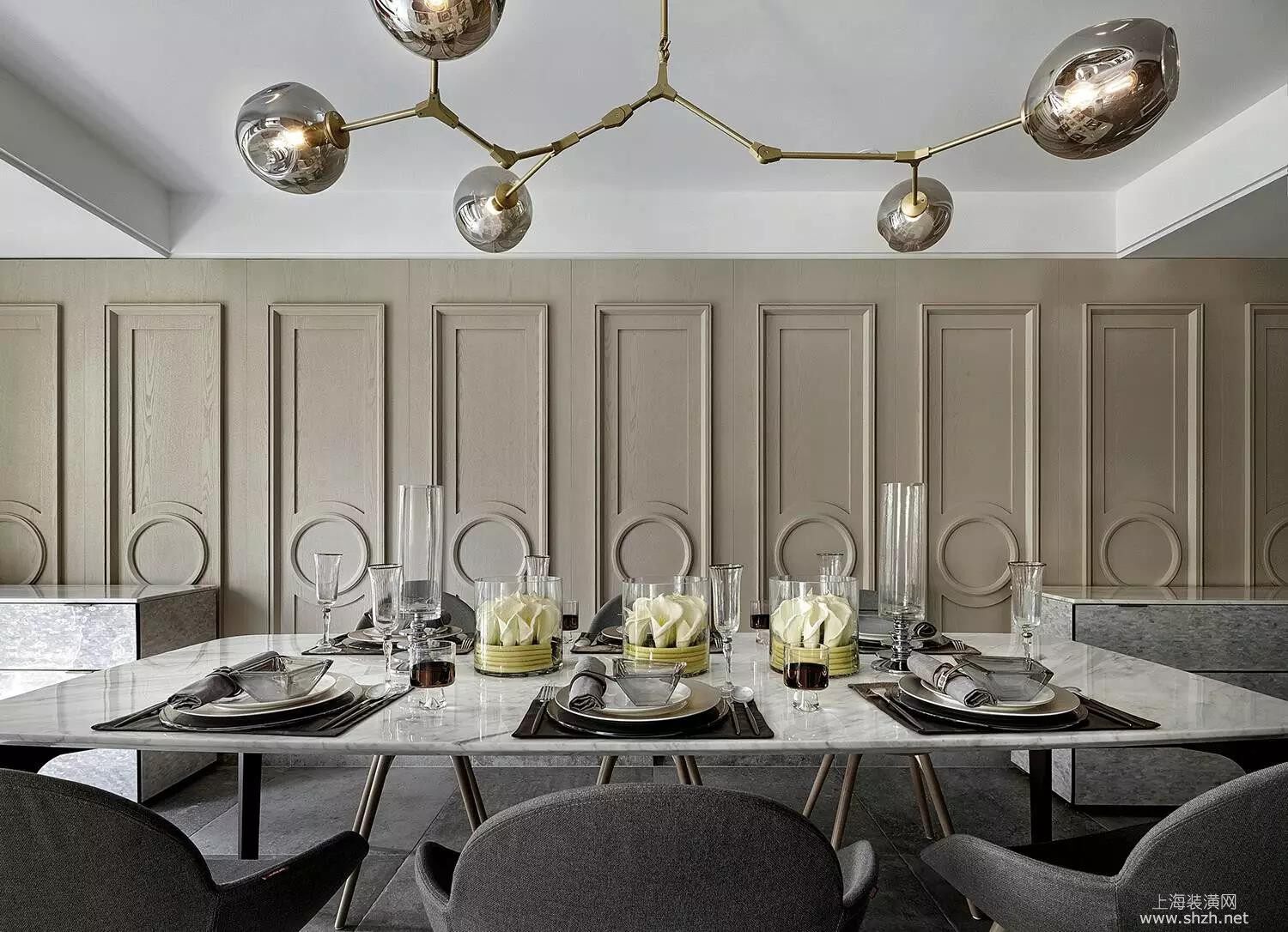 微信图片_20170902120835.jpg - 餐厅的背景墙采用卡其色护墙板,具有强烈的规律感,搭配高定的餐桌等,期待着美食的饕餮盛宴!