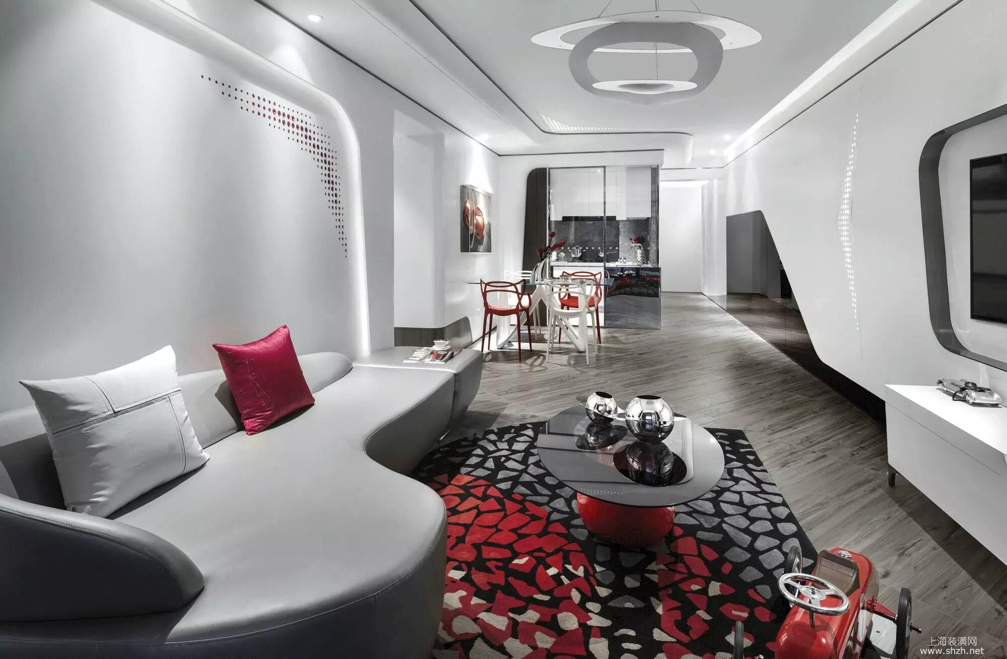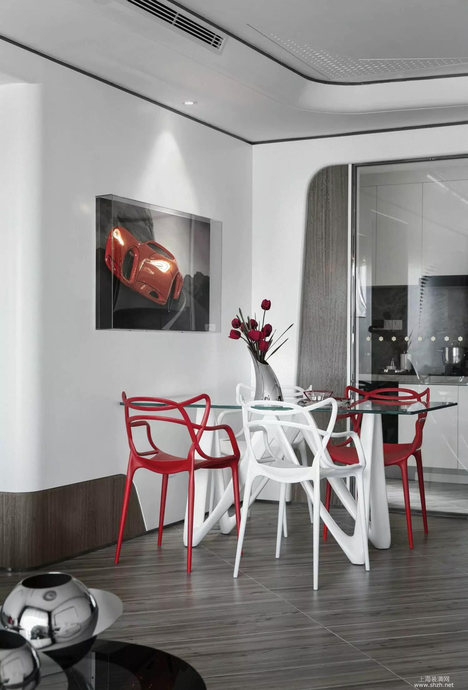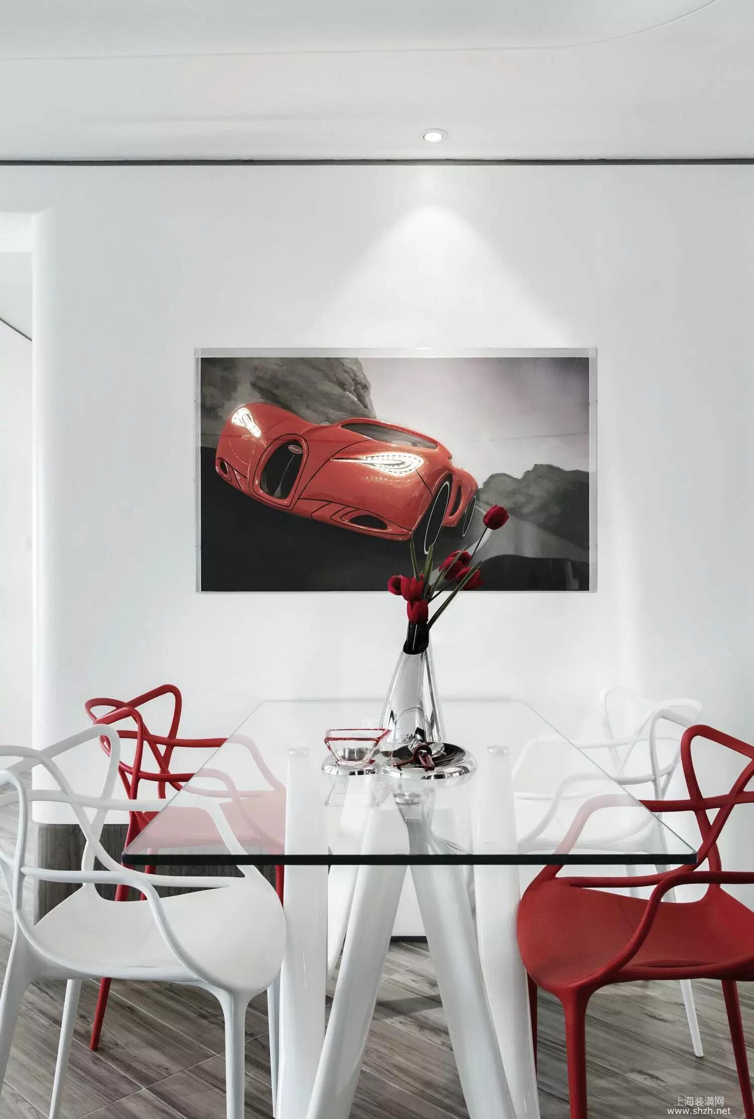 微信图片_20170902121040.jpg - 红白色相交的搭配。玻璃的台面展现了不一样的餐厅设计!