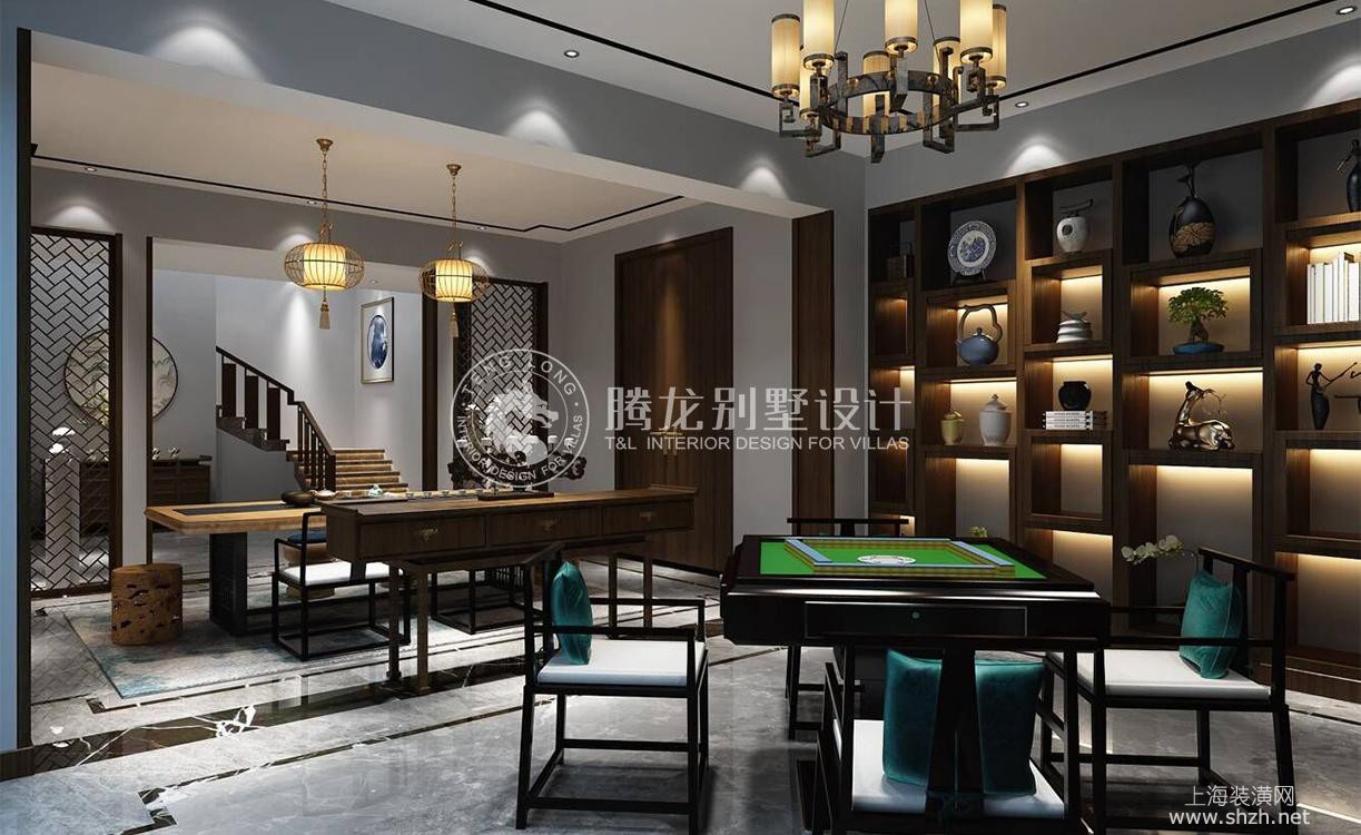 书房 - 古涧堂独栋别墅项目装修新中式风格设计,上海腾龙别墅设计师叶剑平设计方案