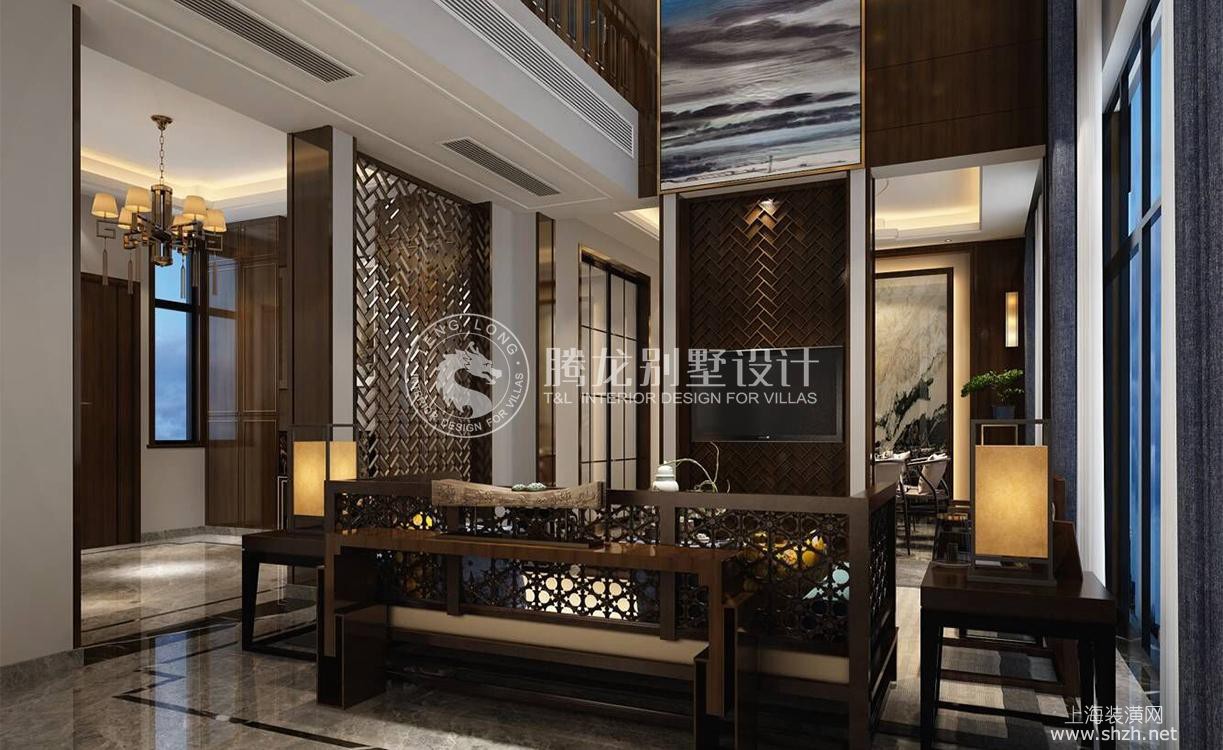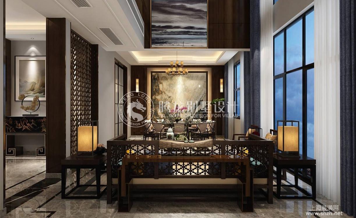 客厅 - 古涧堂独栋别墅项目装修新中式风格设计,上海腾龙别墅设计师叶剑平设计方案