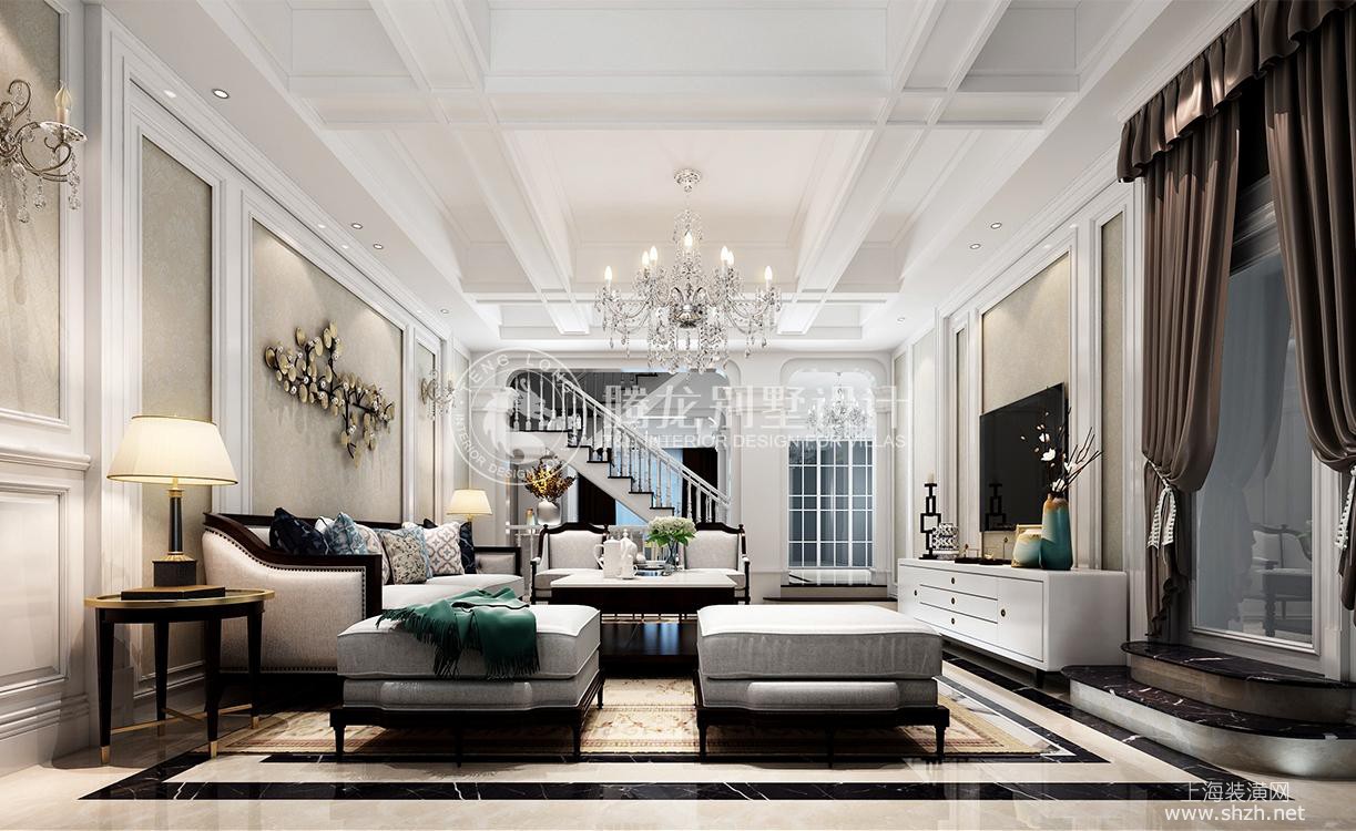 客厅 - 保利御樽苑300平联排别墅项目装修法式风格设计,上海腾龙别墅设计作品,欢迎品鉴