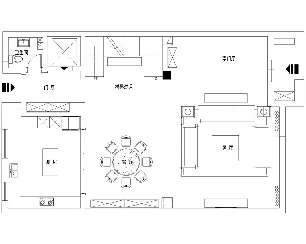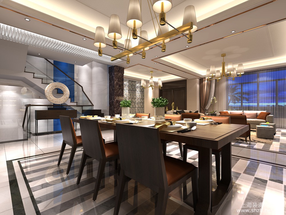 餐厅.jpg - 低调、不张扬、明快、简洁是业主的的要求,同时又要透出主人的文化底蕴及品味。室内日光充足,通透开敞,设计师采用大自然的石材作为地下室两层及一楼的主要材质,整体色调以低调的经典色黑白灰搭配,无论是色泽或是纹理,浑然天成,展现出大气恢宏的高品位质感。本案非常注重居室空间的布局与使用功能的完美结合,重视个性和创造性的表