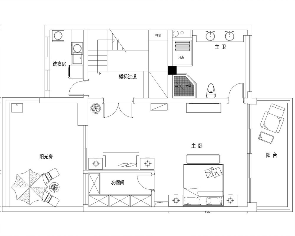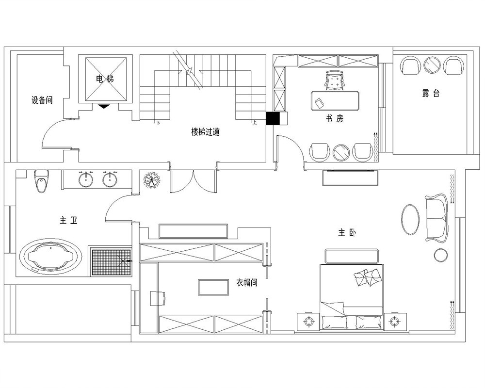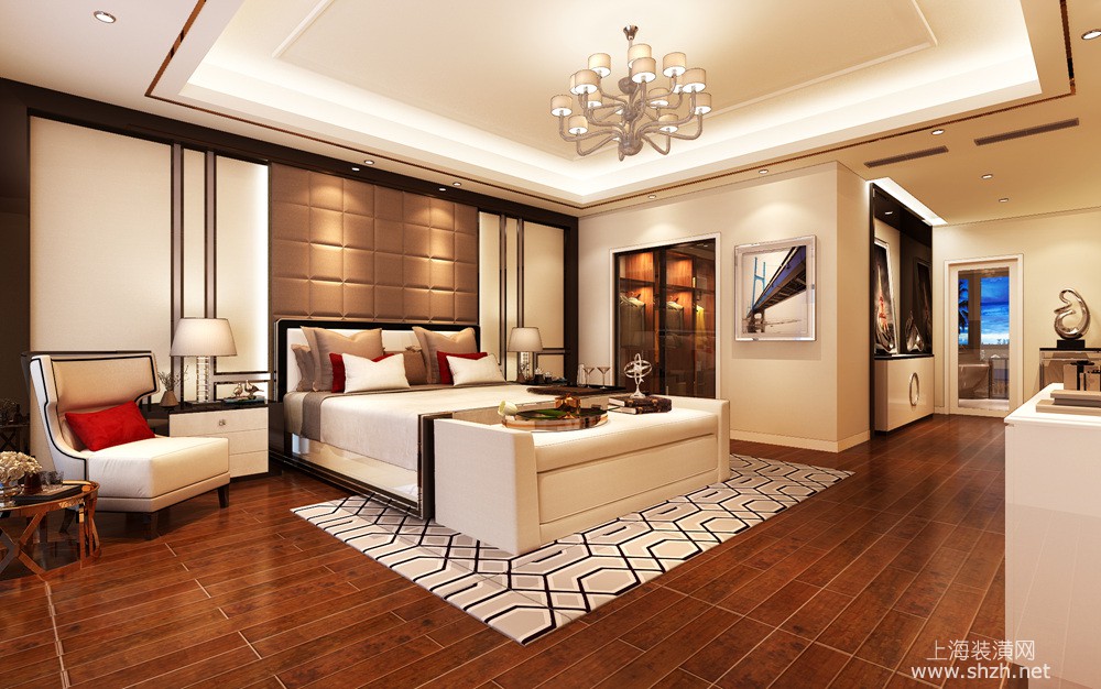 三楼卧室.jpg - 低调、不张扬、明快、简洁是业主的的要求,同时又要透出主人的文化底蕴及品味。室内日光充足,通透开敞,设计师采用大自然的石材作为地下室两层及一楼的主要材质,整体色调以低调的经典色黑白灰搭配,无论是色泽或是纹理,浑然天成,展现出大气恢宏的高品位质感。本案非常注重居室空间的布局与使用功能的完美结合,重视个性和创造性的表