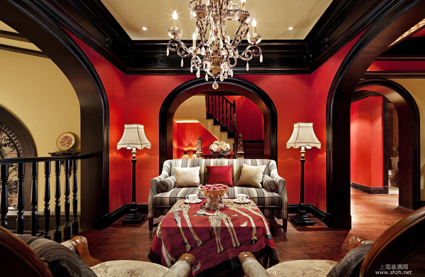 客厅 - 青浦西郊别墅区居礼别墅装修美式新古典装修设计,上海腾龙别墅设计作品,欢迎品鉴