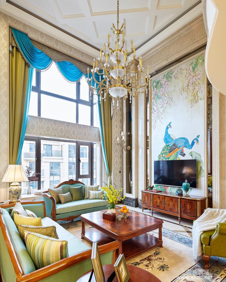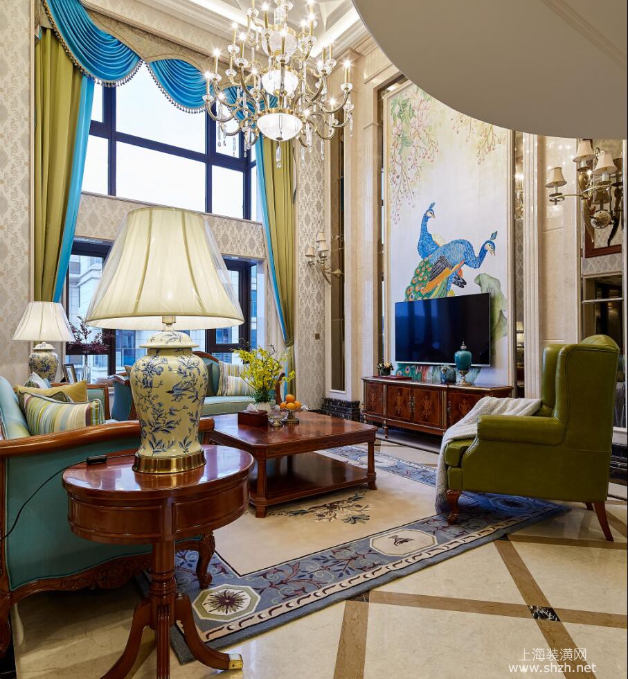 客厅 - 别墅装修美式风格完工实景展示,上海腾龙别墅设计作品,欢迎品鉴