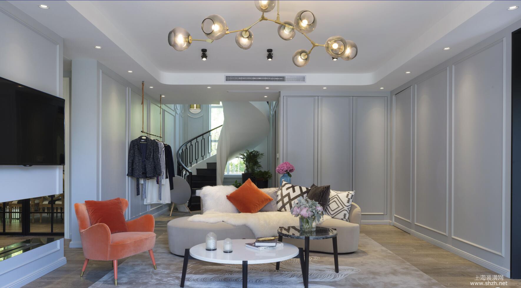 客厅 - 仁恒滨江复式户型装修新欧式风格设计,上海腾龙别墅设计作品,欢迎品鉴
