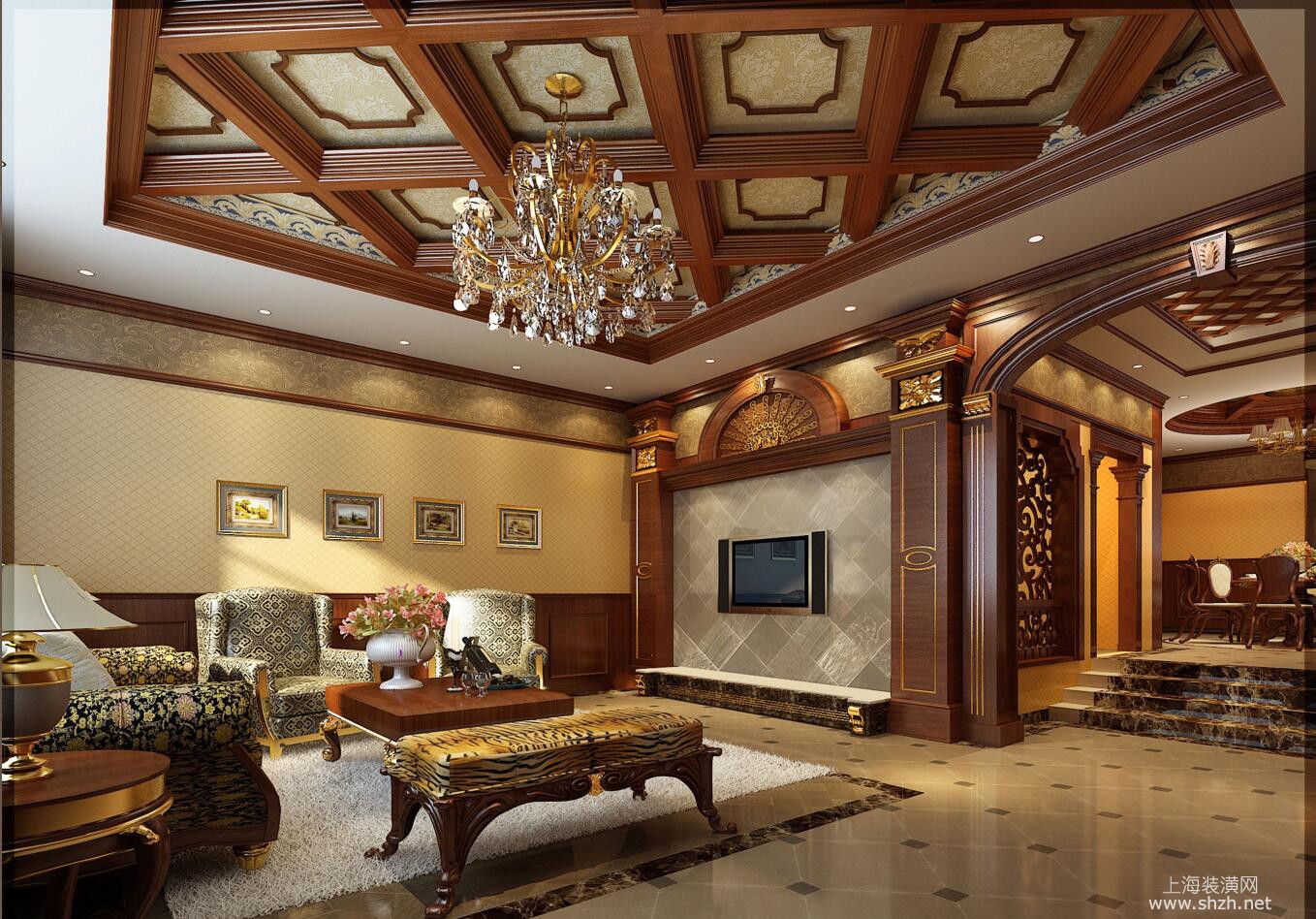 客厅 - 别墅装修托斯卡纳美式风格设计,上海腾龙别墅设计作品,欢迎品鉴