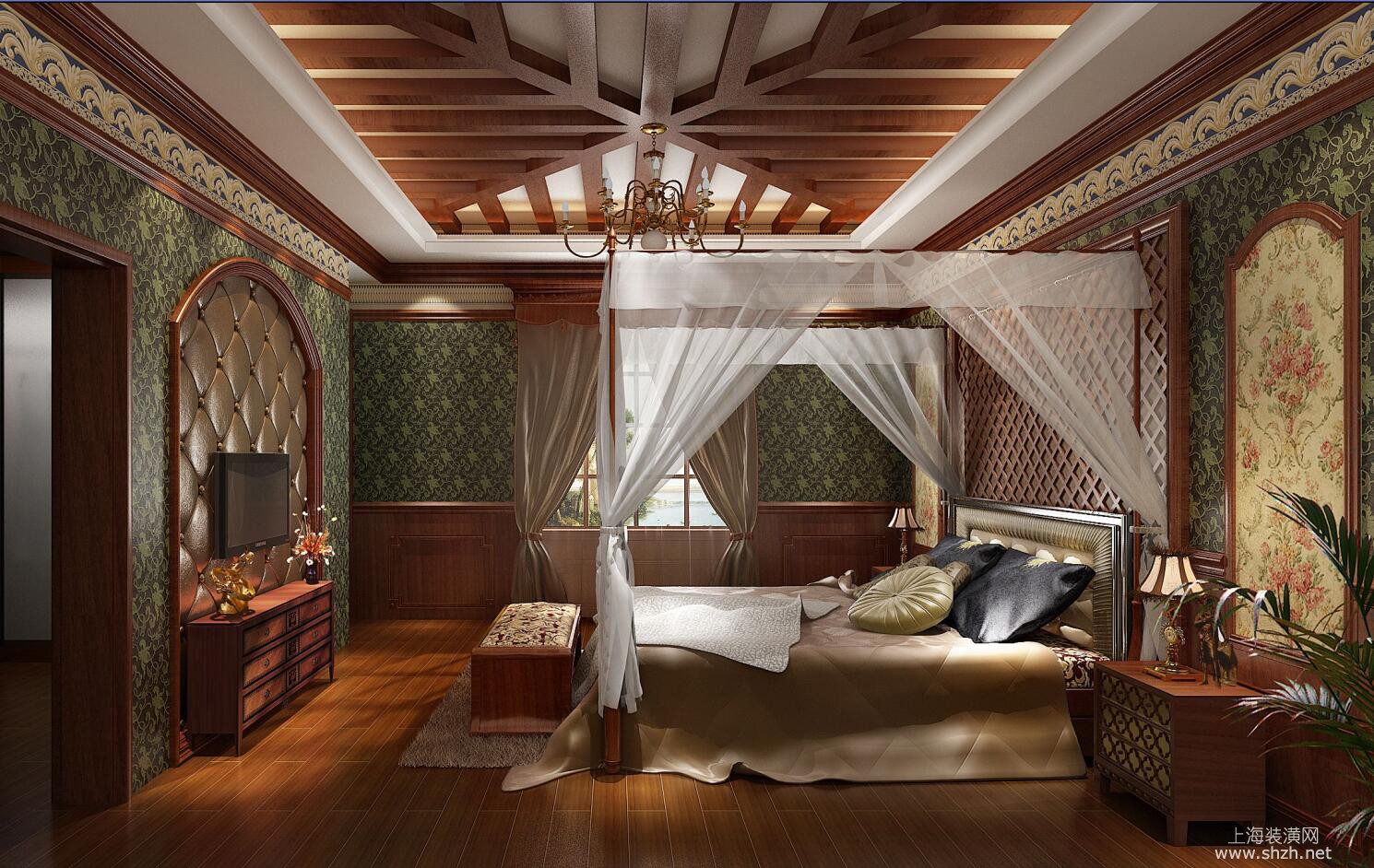 卧室 - 别墅装修托斯卡纳美式风格设计,上海腾龙别墅设计作品,欢迎品鉴
