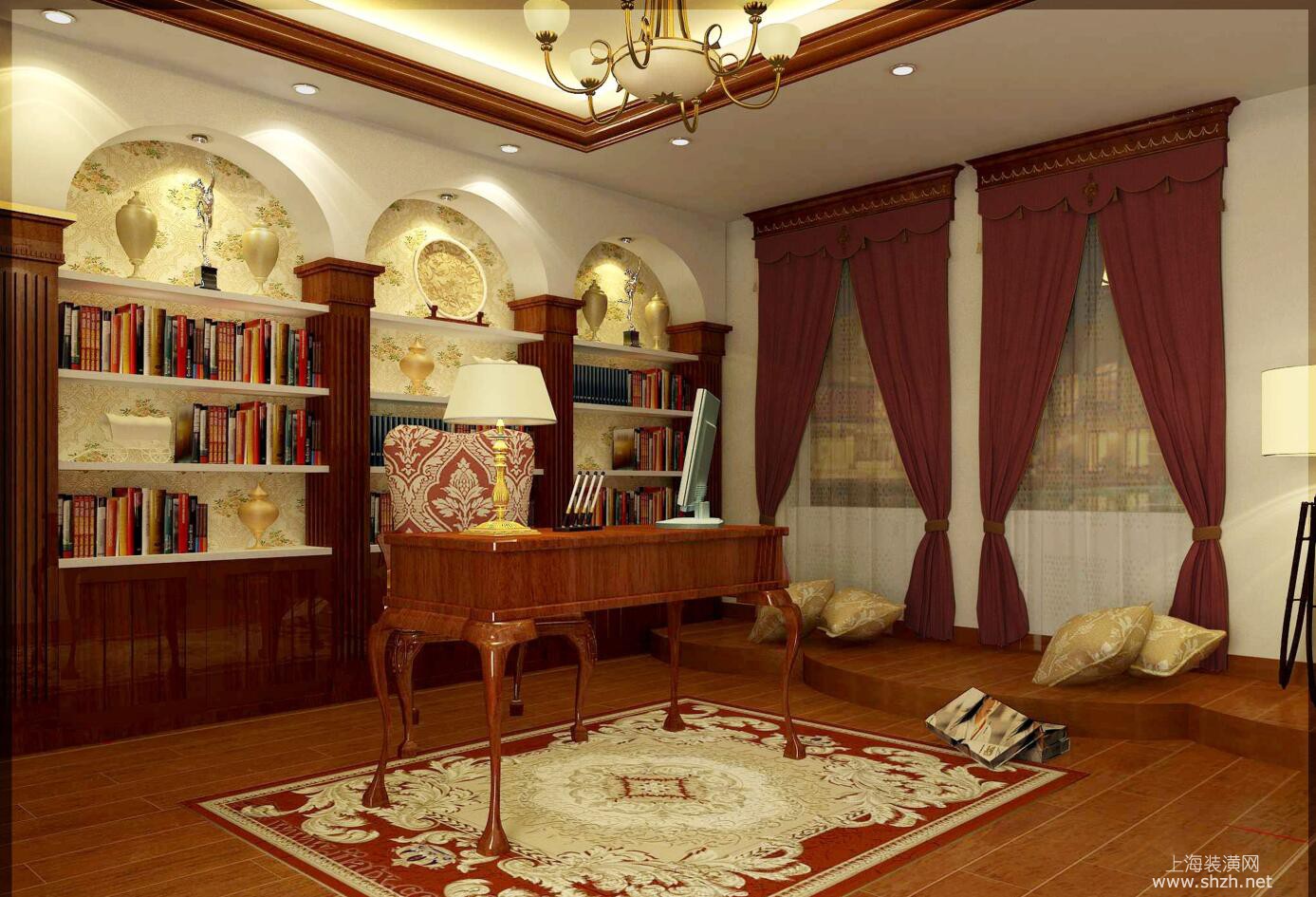 书房 - 别墅装修托斯卡纳美式风格设计,上海腾龙别墅设计作品,欢迎品鉴