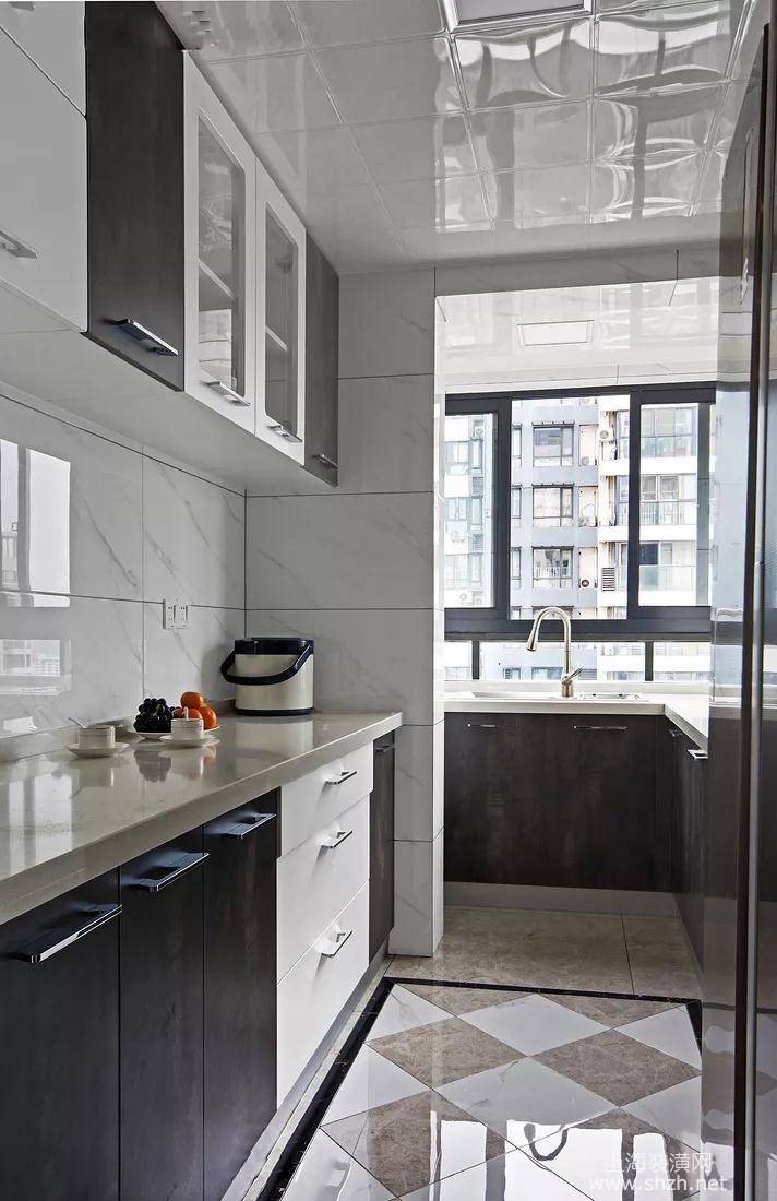 厨房 - 厨房地面以米黄+白色的地砖交错斜铺,同时把小生活阳台纳入到厨房里面整体空间更加的实用丰富;