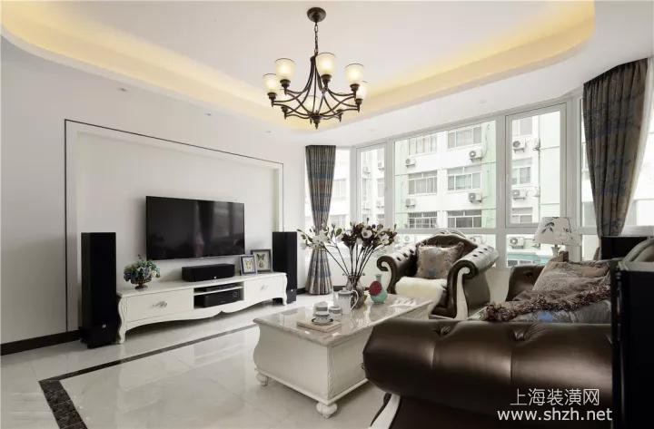 客厅 - 客厅电视墙以乳胶漆刷新,并做了个凹洞造型+四周黑边的装饰,整体显得简单而又高档;