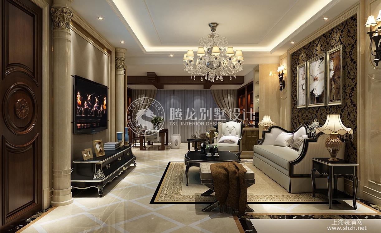 客厅 - 九龙仓兰宫别墅项目装修欧式古典风格设计,上海腾龙别墅设计作品,欢迎品鉴