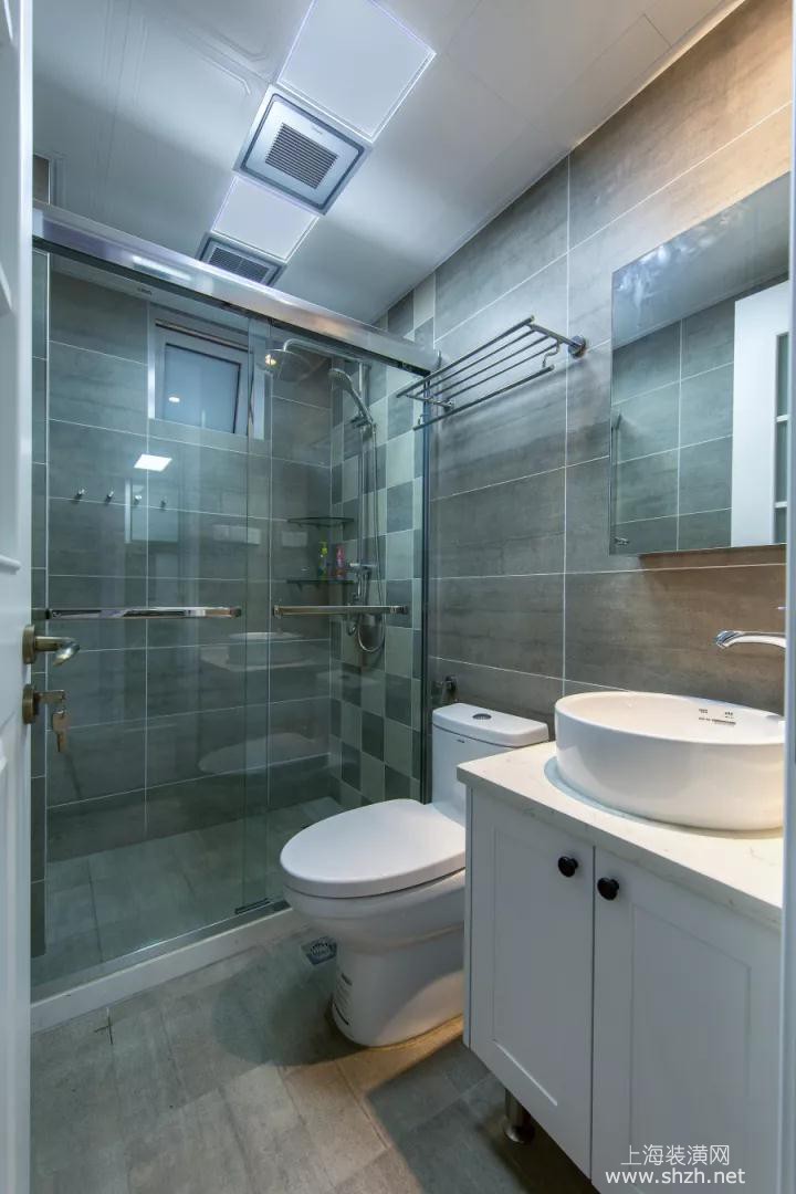 卫生间 - 卫生间淋浴区的墙面加入了灰白方砖的搭配,结合简约时尚的整体空间,显得舒适而又自然。