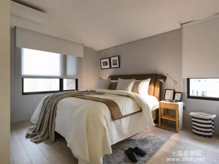 卧室 - 主卧天花板,因床头有超级大梁,又低又宽,以斜天花板虚化梁。睡眠实一点都没有感觉有梁,就像国外的斜屋顶概念。