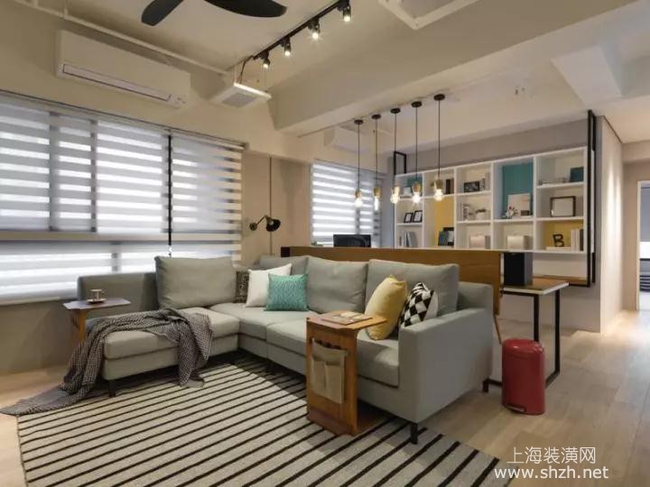 客厅 - 使用跳色成为第一个亮眼焦点,以爱迪生灯泡作为点缀,採用一点点的实木木皮,简单的铁件角架,让柜体质感加分且轻盈感。