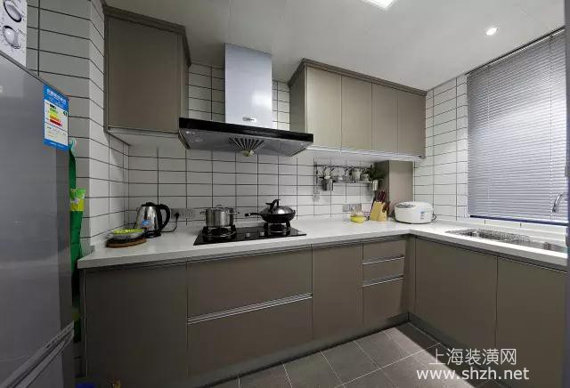 厨房 - 厨房是玻璃推拉门,旁边的墙上则装了个展示架,摆上书籍与装饰品后,与旁边的入墙收纳柜搭配一起,非常实用。