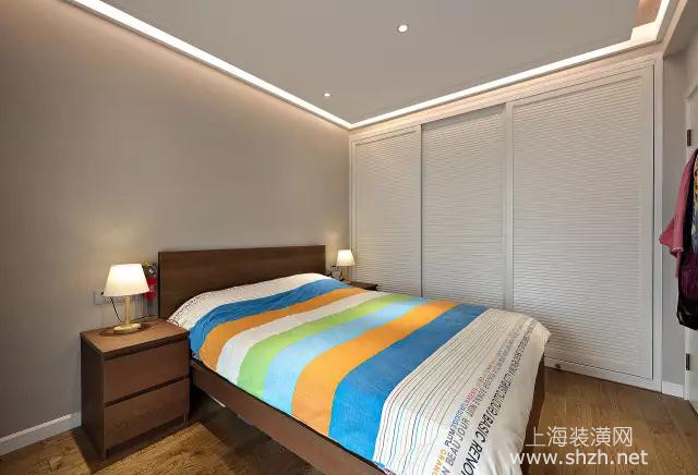 次卧 - 次卧的硬装氛围上稍微沉重些,搭配活力俏皮的床单,整体显得更加的的朝气蓬勃的感觉。
