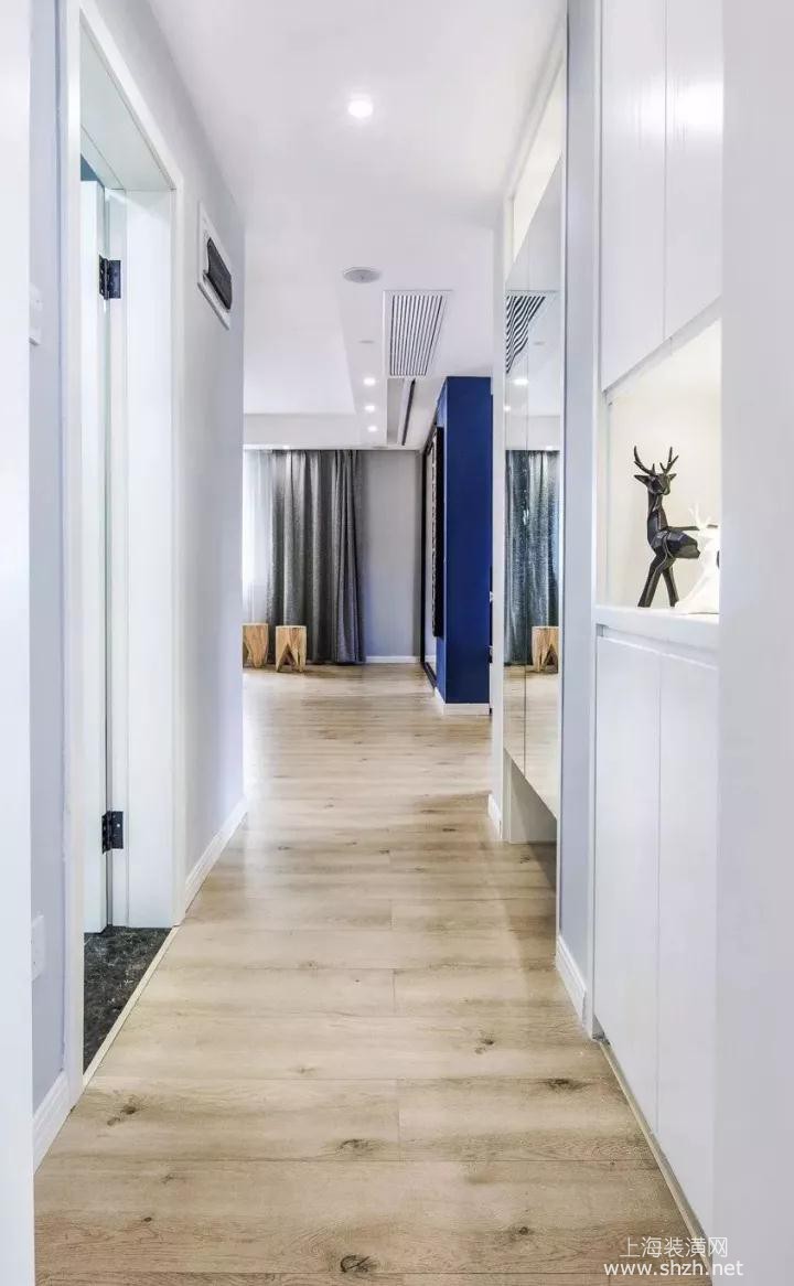 玄关 - 宽敞的过道,鞋柜嵌入到墙面,保持干净整洁由玄关开始做起,全身镜的柜门是女主的最爱,每每出门或者回家都可以照照看看镜子美美的自己