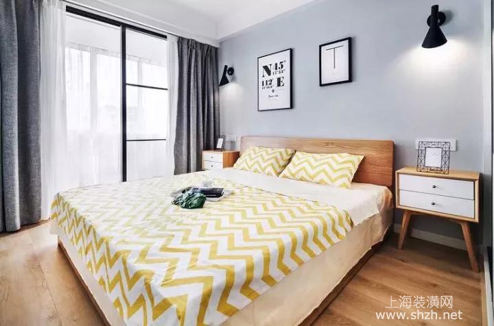 主卧 - 简洁的主卧,床头只用两幅挂画装饰,高级灰的墙面,加上两边的壁灯,主要还是搭配了原木色的床+床头柜,因造出一个小资的卧室氛围;