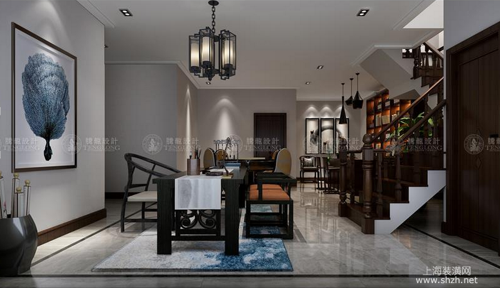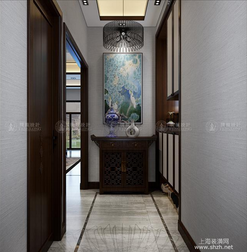 走廊 - 别墅装修新中式风格设计,上海腾龙别墅设计师周峻作品