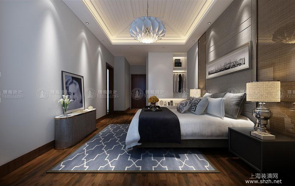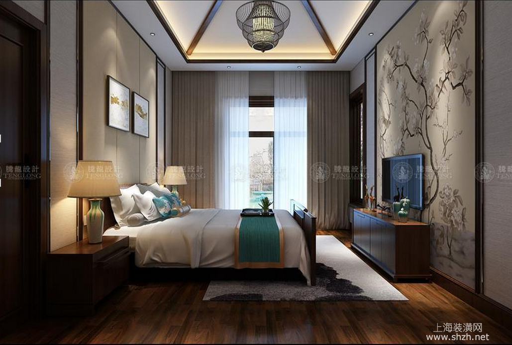 卧室 - 别墅装修新中式风格设计,上海腾龙别墅设计师周峻作品