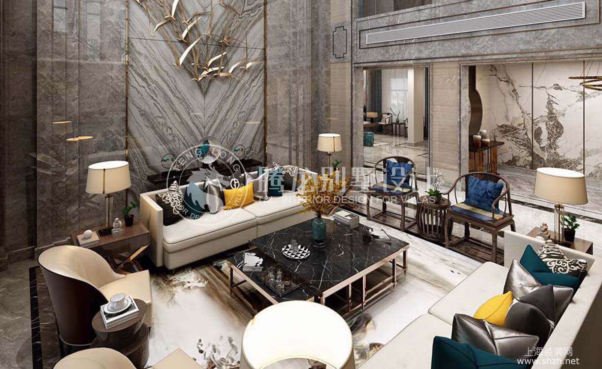 客厅 - 金茂逸墅别墅装修新古典风格设计,上海腾龙设计师叶剑平作品,欢迎品鉴,目前正在施工,