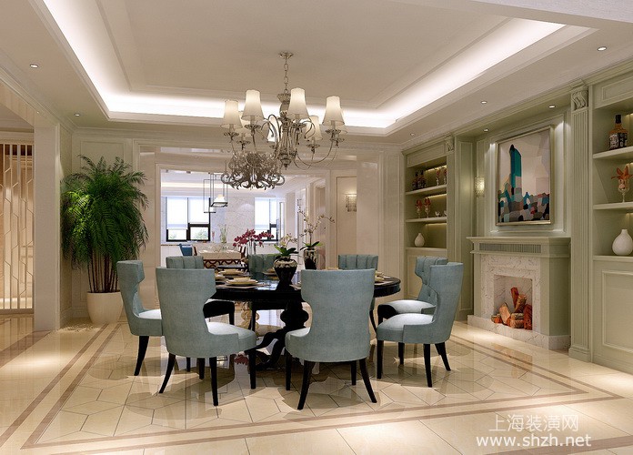餐厅 - 安亭高尔夫别墅项目装修简欧风格设计,上海腾龙别墅设计作品,欢迎品鉴